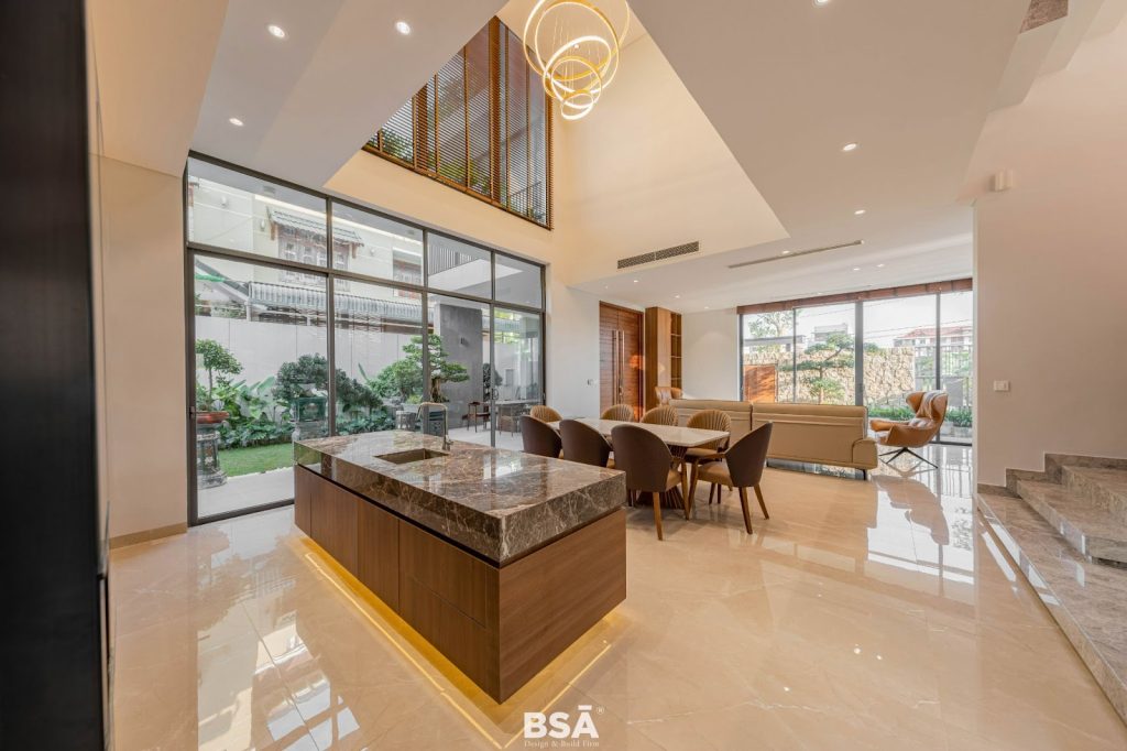 Lắng nghe và thấu hiểu mọi nhu cầu, mong muốn của gia chủ, mỗi chi tiết trong biệt thự đều được nhóm KTS trau chuốt và lựa chọn vật liệu vô cùng tỉ mỉ, để cho ra đời một không gian sống tiện nghi nhất. Một ngôi nhà đẹp không chỉ là về yếu tố kiến trúc nội thất mà nó còn phải tạo được sự ấm cúng và thoải mái mỗi khi trở về. Các thành phần của ngôi nhà được kỹ lưỡng chuyển đổi, những bức tường được mở rộng thông qua các cửa kính lớn để kết nối ánh sáng tự nhiên và gió trời.