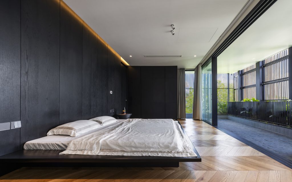 Mô tả bằng văn bản do các kiến trúc sư cung cấp. Tọa lạc tại một khu dân cư ven sông yên tĩnh, cách xa trung tâm thành phố, Black Cube House là dự án cải tạo một ngôi nhà phố bốn tầng, được xây dựng vào năm 2019. Ngôi nhà có ba mặt thoáng và tầm nhìn rộng ra sông Sài Gòn. Tuy nhiên, cách bố trí không gian cũ khiến ngôi nhà thiếu ánh sáng, ngột ngạt và không phù hợp với lối sống mở và gần gũi với thiên nhiên của chủ nhà.