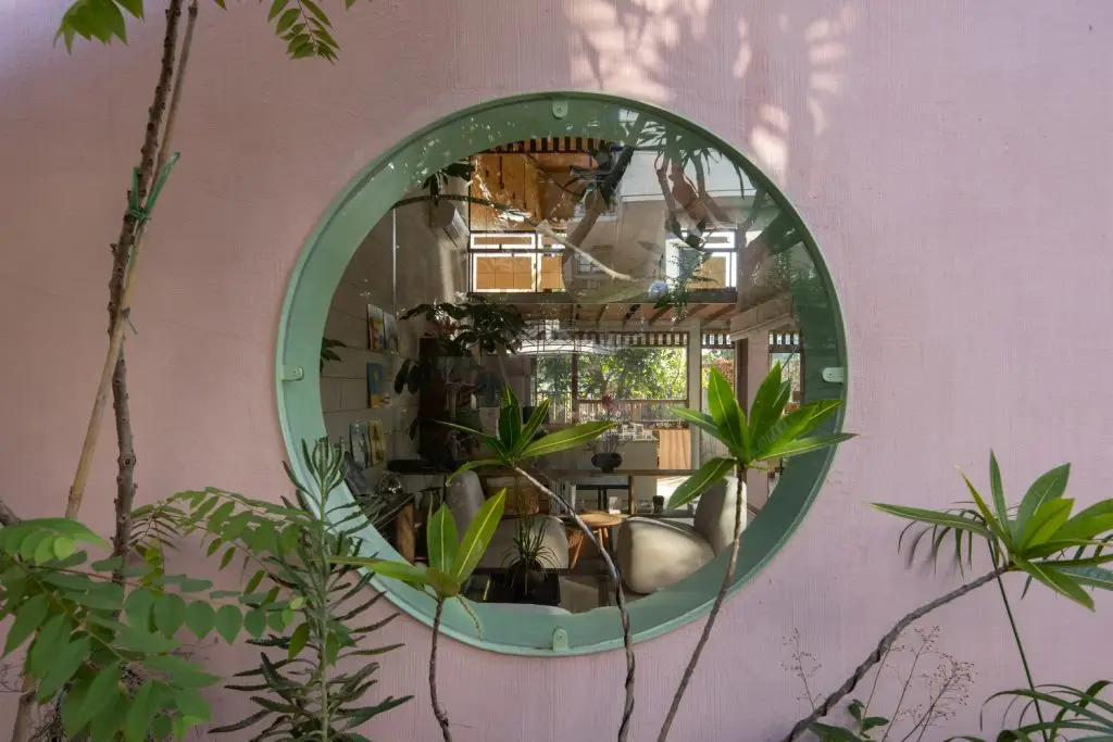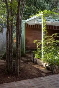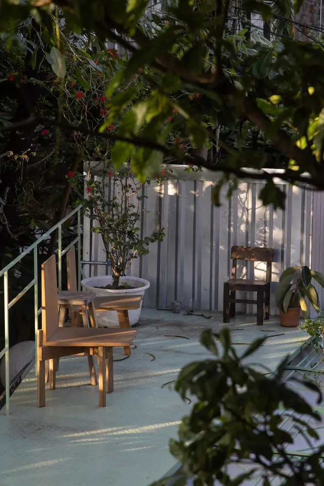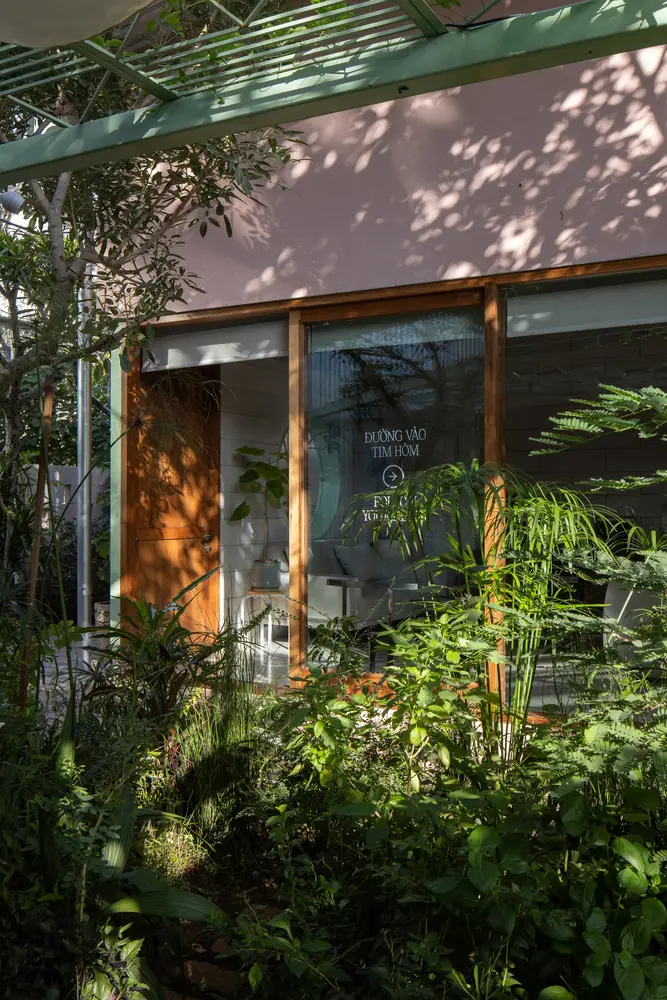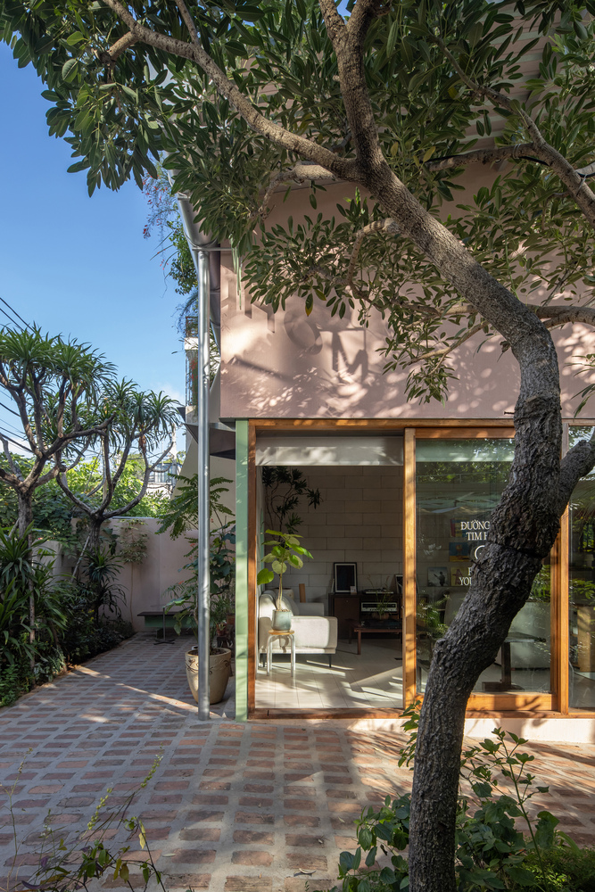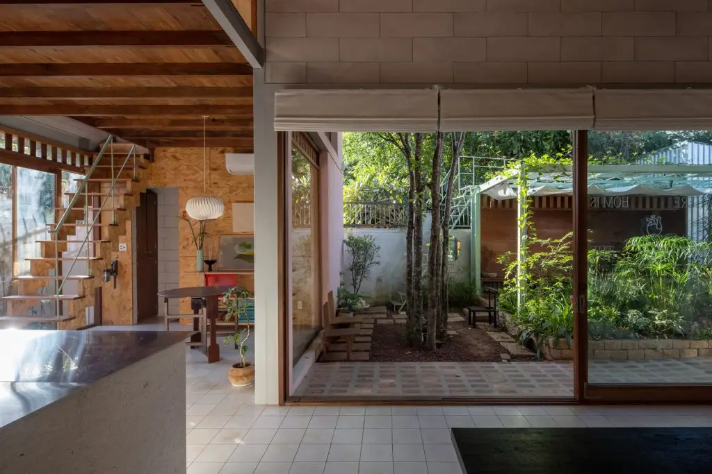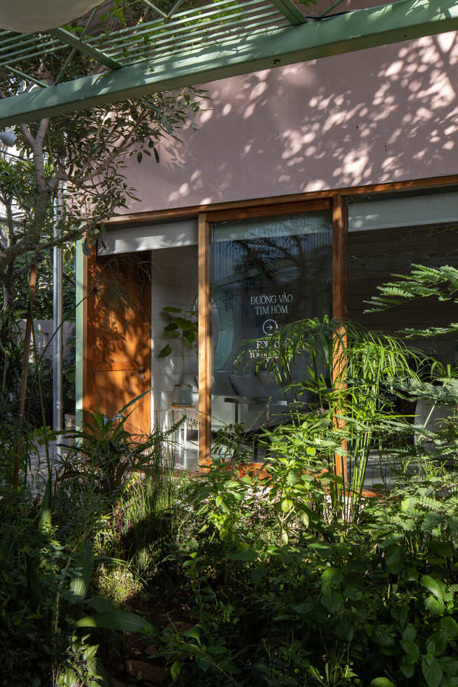Việc chăm sóc khu vườn, với thảm thực vật bản địa, gợi nhớ đến truyền thống chăm sóc cây cối địa phương: cây cảnh xen kẽ với rau củ, cây ăn quả, cây leo và các loài cây che bóng. Hàng rào thấp và địa hình dốc của sân trước gợi nhớ đến những nét quen thuộc của những ngôi nhà vườn bản địa, đồng thời gián tiếp gợi nhớ đến bến sông ngay phía sau khu đất. Các ranh giới có thể điều chỉnh được càng làm tăng thêm cảm giác về chiều sâu của dự án.