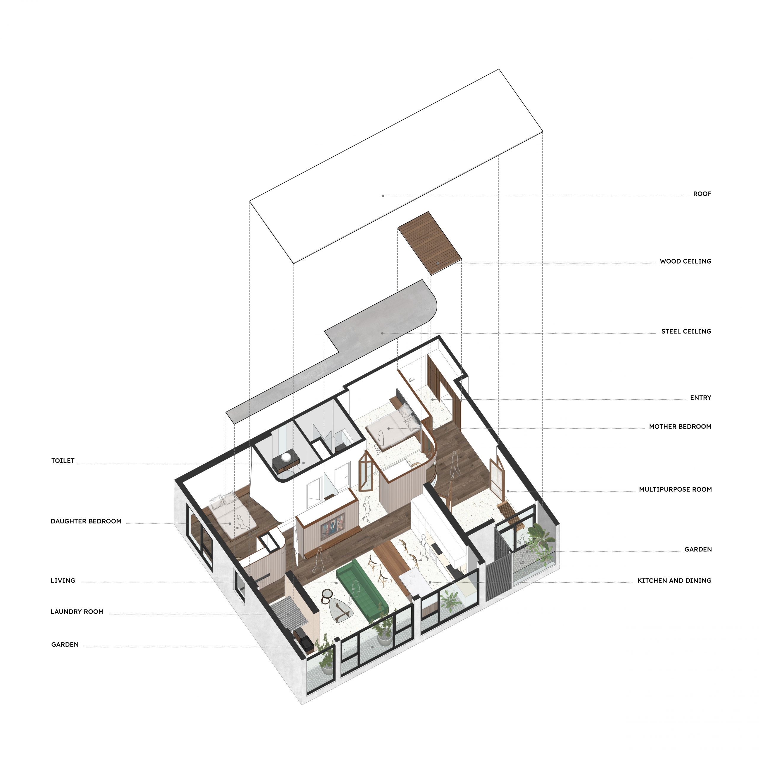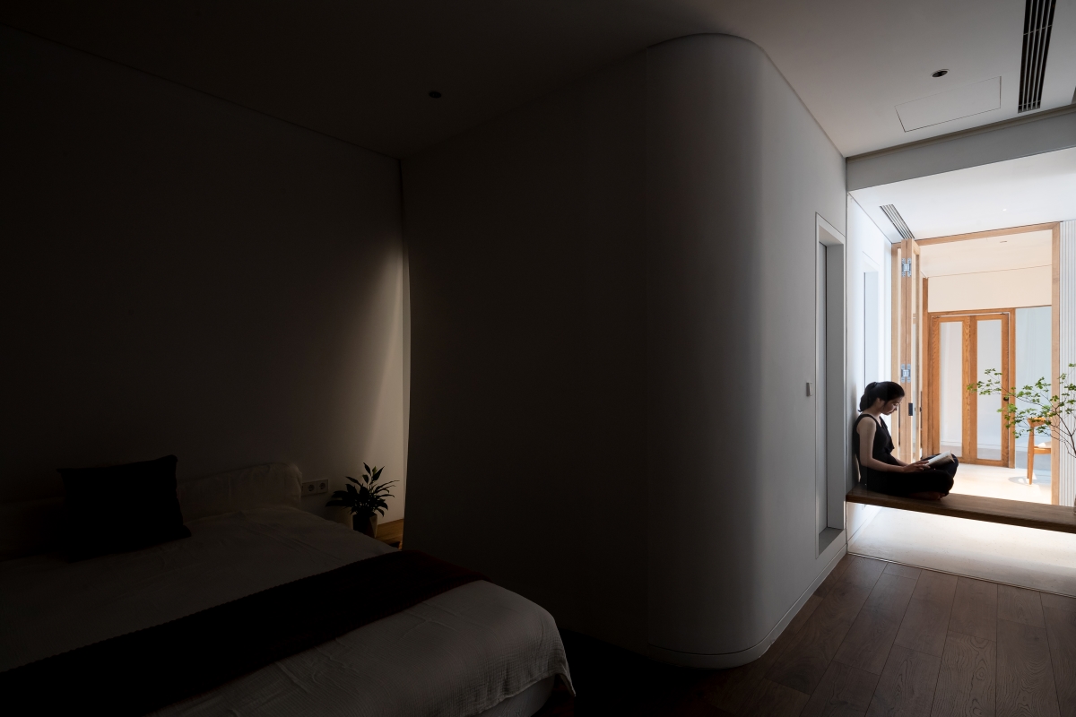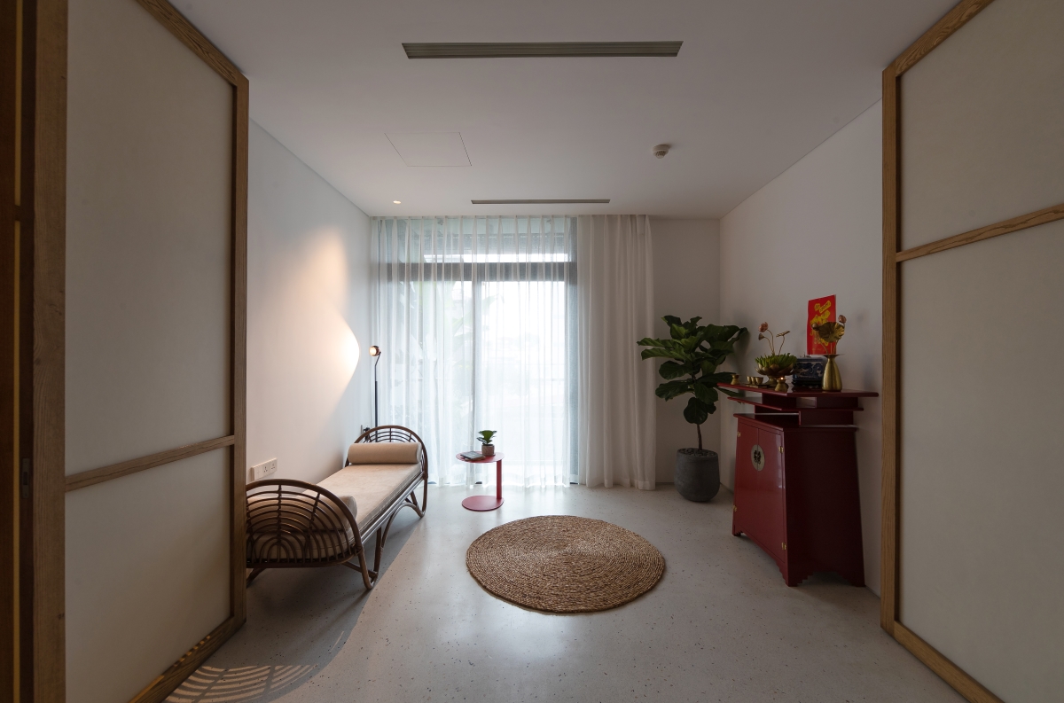 Với tất cả những yếu tố trên đã khiến KTS thực sự muốn mang bầu không khí truyền thống quen thuộc vào trong căn hộ này nhưng với hơi thở đương đại, đâu đó vẫn có hình ảnh của “mái”, của “hiên” của những lối đi dẫn tới những khung cửa, sau mỗi lần đóng hay mở đều tạo ra những khoảnh khắc đối thoại giữa các thành viên trong gia đình.