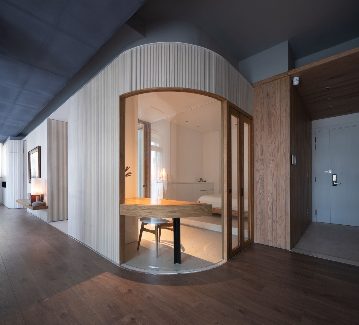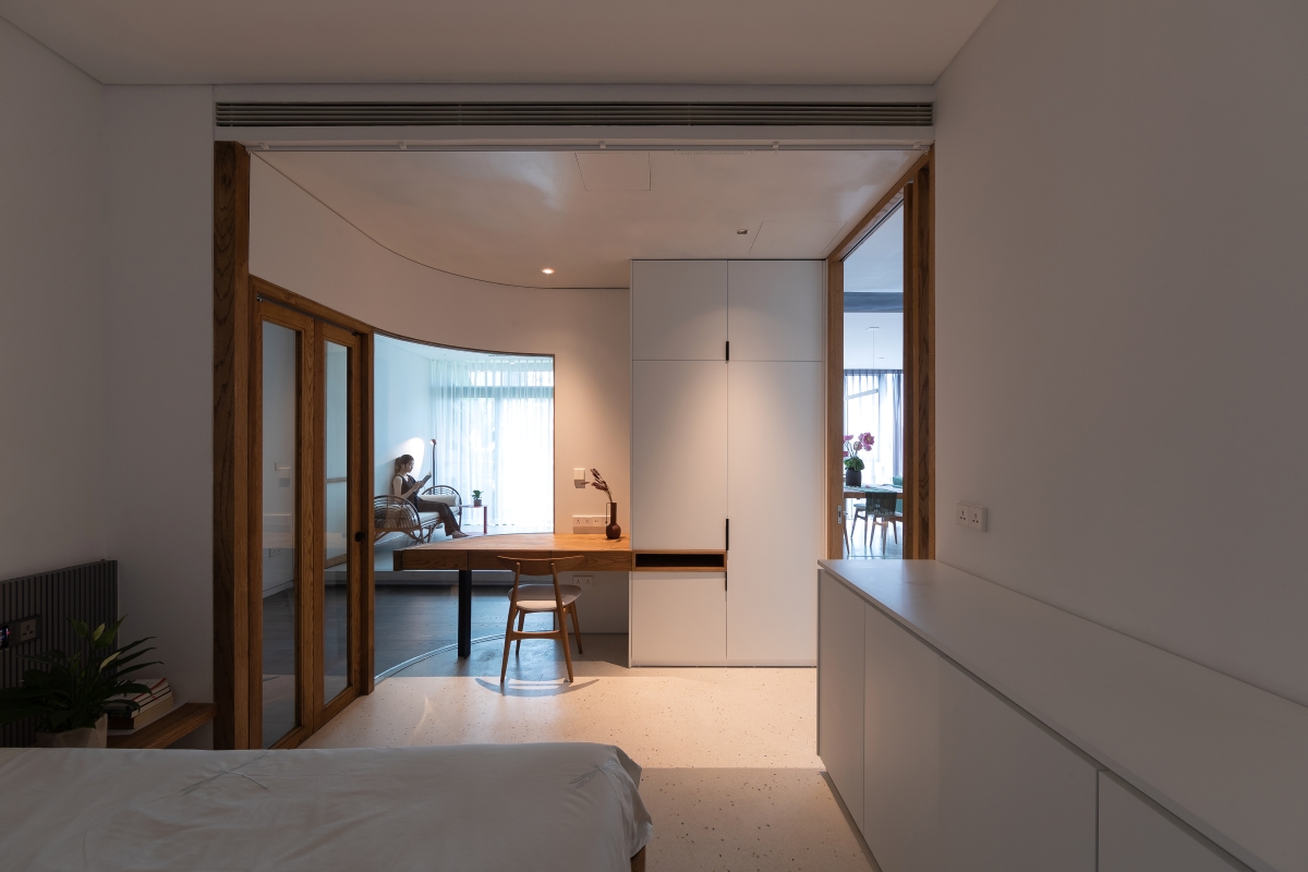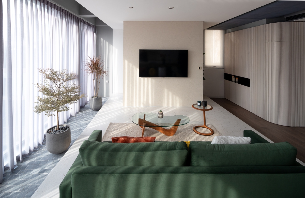 Khối cong đầy nghệ thuật là điểm nhấn nổi bật của thiết kế căn hộ