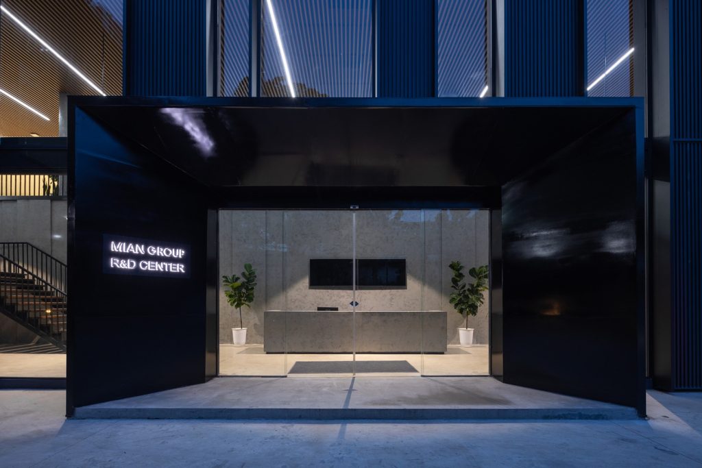Kiến trúc của dự án này không chỉ thách thức những hạn chế của việc tái sử dụng không gian cũ mà còn tạo ra một không gian làm việc hiện đại và mở, thúc đẩy môi trường làm việc tích cực và năng động. Đồng thời, nó đáp ứng được yêu cầu khắt khe của các quy trình nghiên cứu và sản xuất. Mặt tiền, sử dụng các tấm thép đen và kính lớn, không chỉ góp phần tạo nên vẻ ngoài hiện đại mà còn tối ưu hóa ánh sáng tự nhiên cho không gian làm việc và khu vực nghiên cứu-sản xuất.