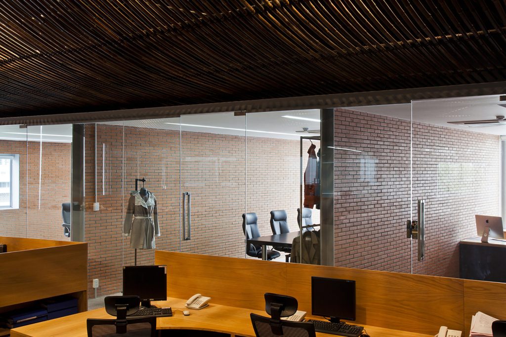 Các vật liệu địa phương được sử dụng xuyên suốt dự án, chẳng hạn như gạch lộ thiên và tre, để thể hiện bản sắc địa phương và ý thức bảo vệ môi trường. Trần nhà bằng tre dẻo, che giấu các thiết bị cơ khí và đèn chiếu sáng, được thiết kế cho không gian văn phòng trung tâm để mô phỏng bề mặt dệt. Một phần của trần tre này kéo dài xuống tầng trệt và trở thành trần của khu vực lễ tân để chào đón khách.