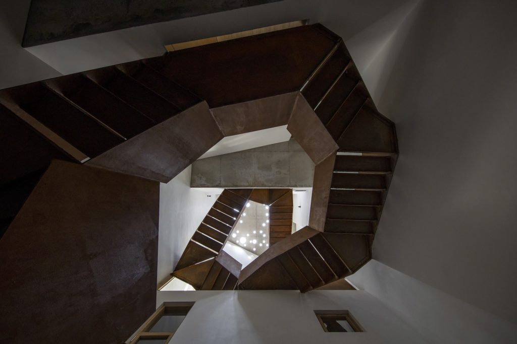 Bốn căn hộ thông tầng được thiết kế với các chức năng được sắp xếp và căn chỉnh trong không gian 5x20m để tạo ra một lõi lưu thông ở trung tâm, với lối vào mỗi căn hộ ở nhiều tầng khác nhau.