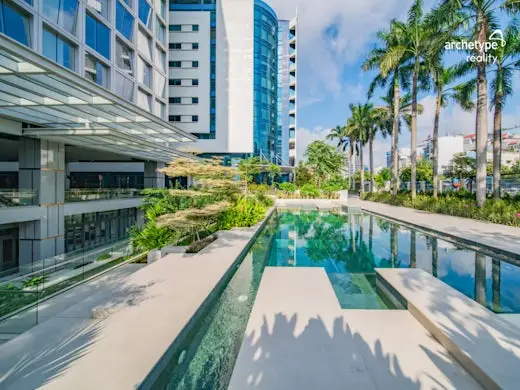 The e.town 6 building is a testament to modern design and functionality. Spanning 79,779 sqm, it offers a comprehensive work environment with 14 dedicated office floors, a spacious 4-level underground car park, a convenient underground food court, a naturally ventilated ground floor, and a top floor with amenities including a swimming pool and terraces.