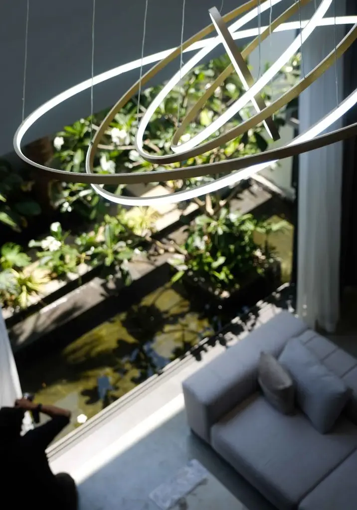 Với việc tận dụng khung cảnh xung quanh, hồ nước và mảng xanh được tích hợp vào thiết kế không chỉ làm cho không gian trở nên sinh động mà còn mang lại một không gian yên bình và thư thái