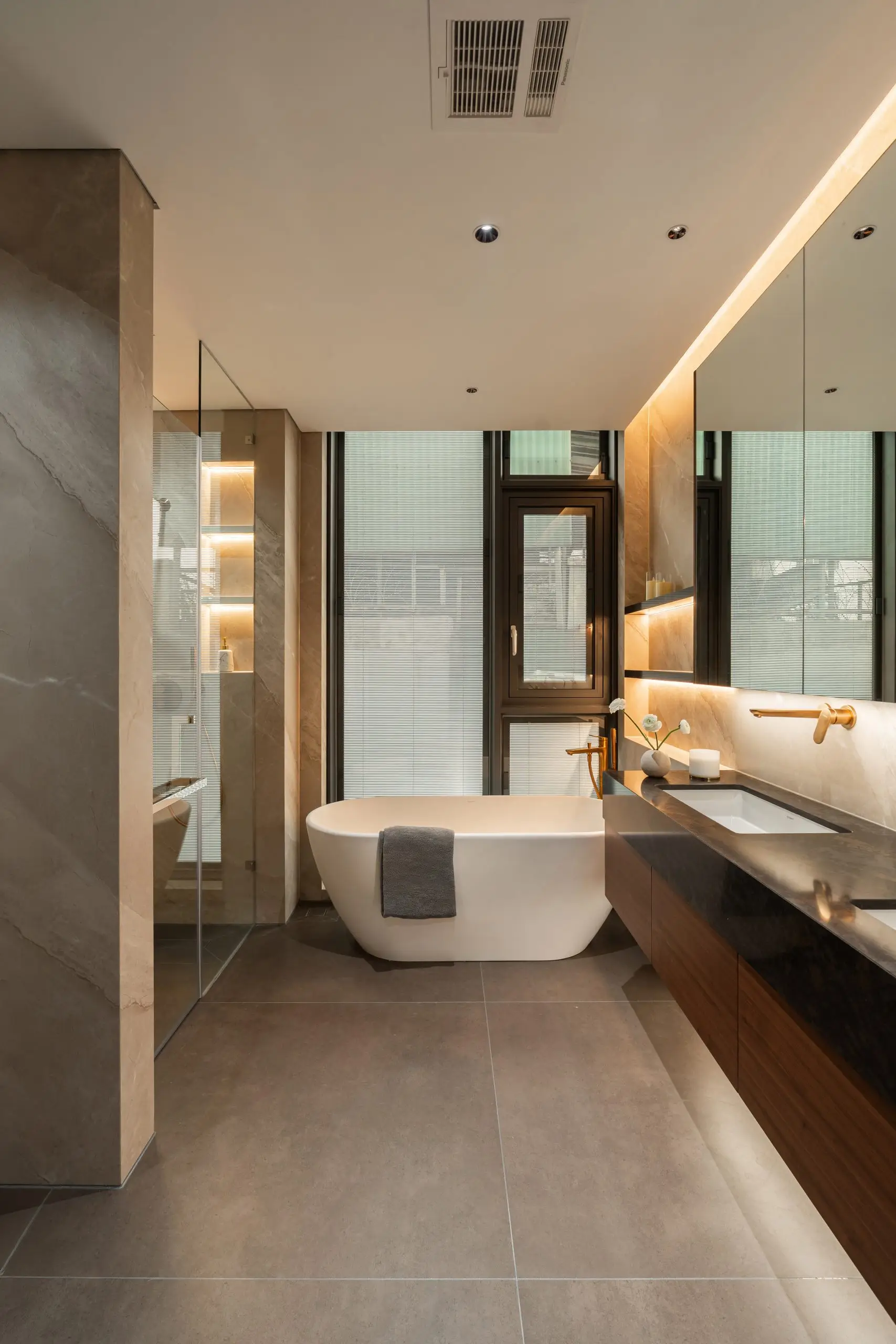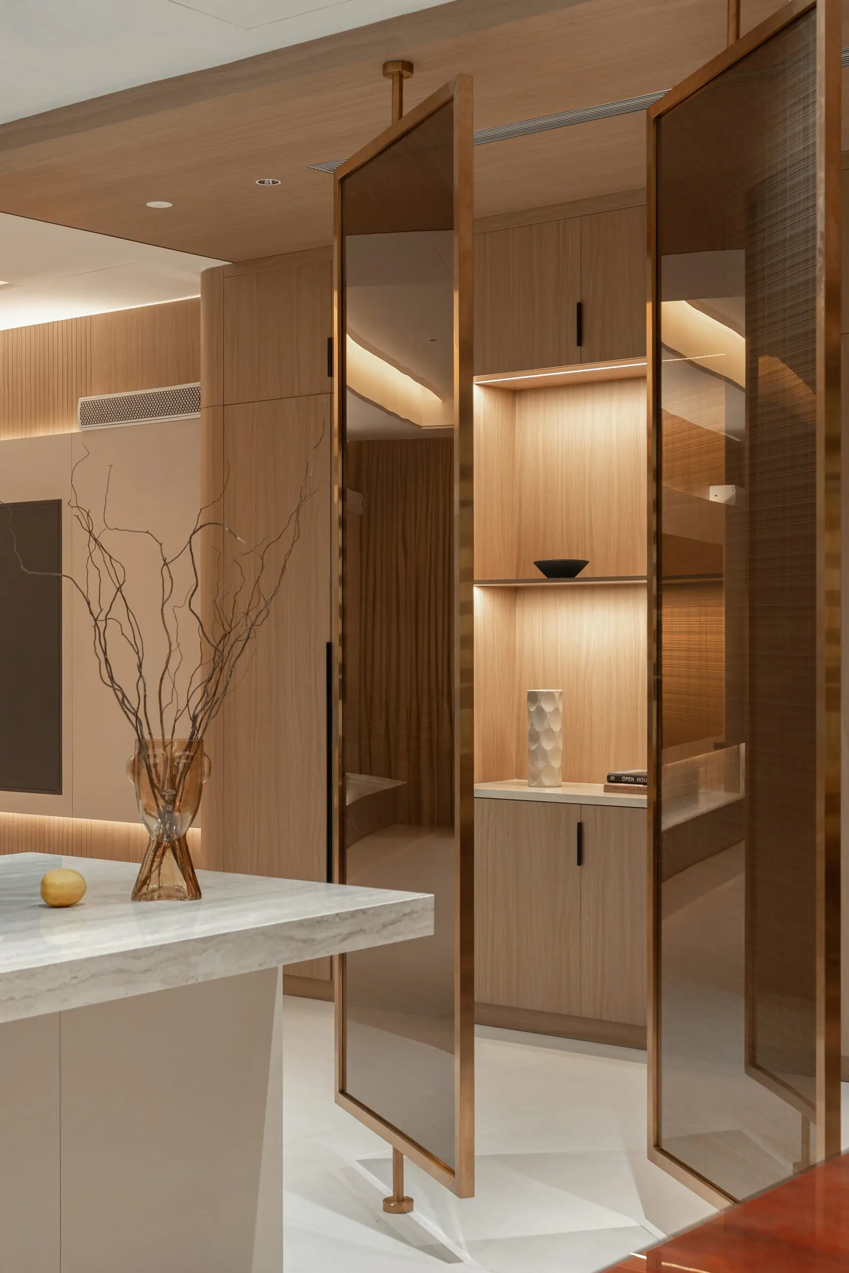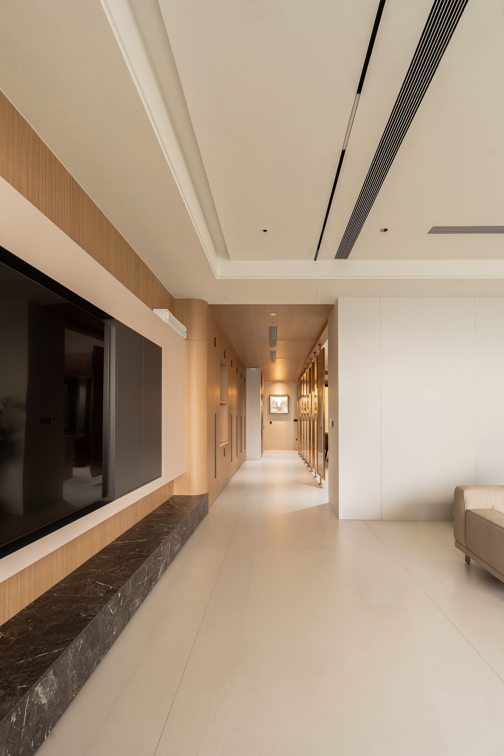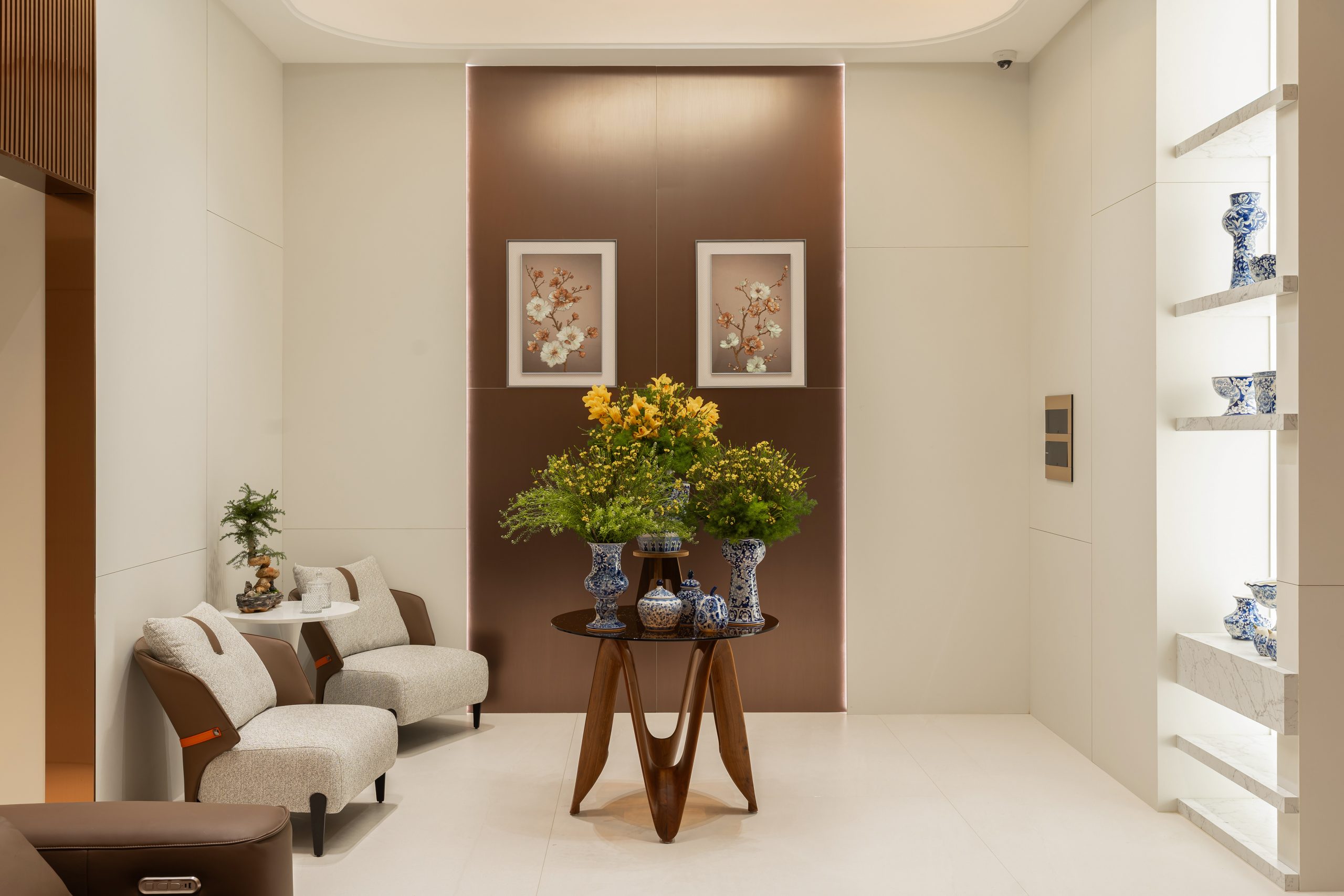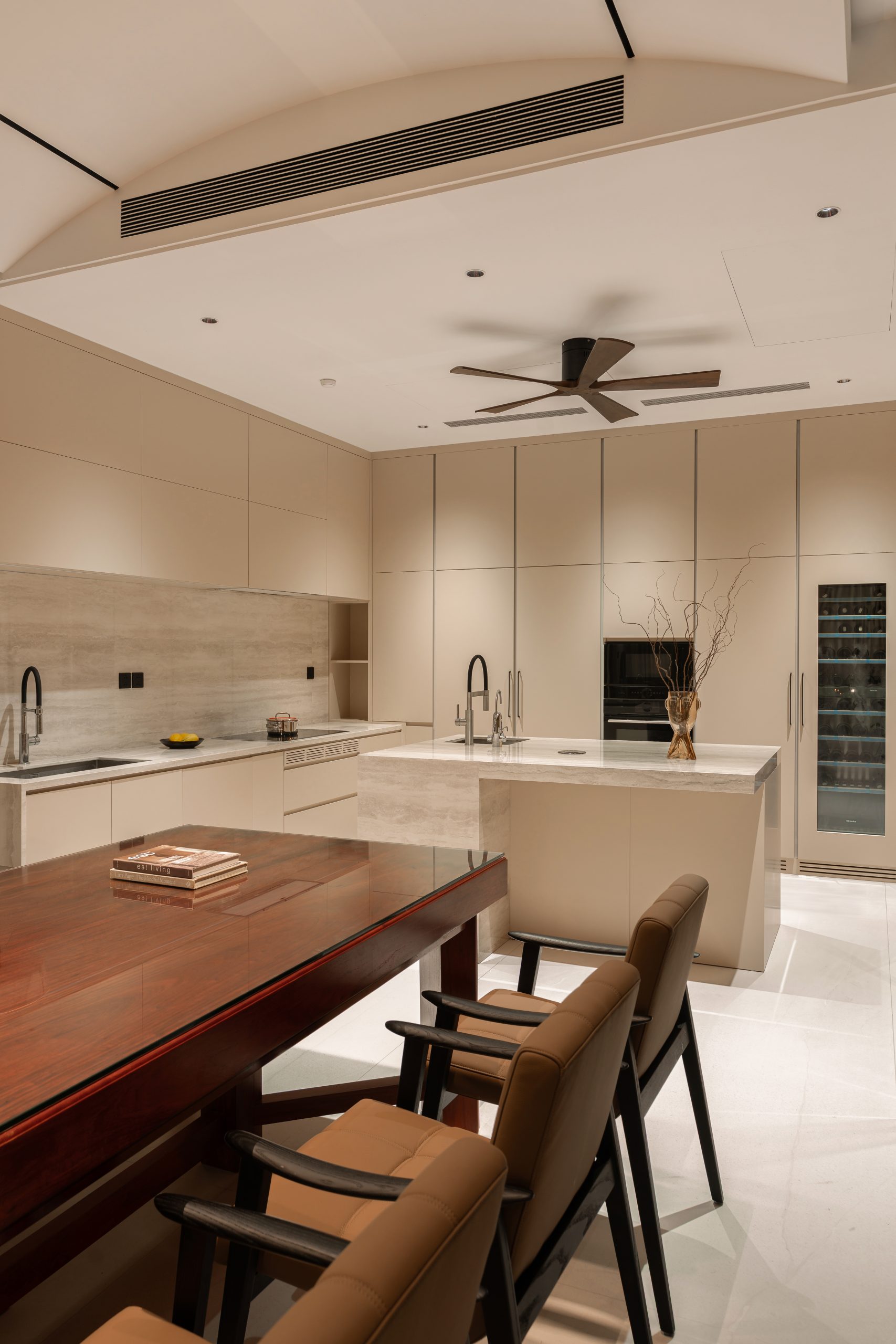 Dự án Ha Noi Westlake Villa được phát triển theo phong cách Modern Luxury, hướng đến một không gian sống rộng mở, sang trọng nhưng vẫn giữ được cảm giác ấm áp và tinh tế. Tổng thể nội thất sử dụng bảng màu trung tính như kem, be và nâu gỗ, kết hợp các vật liệu cao cấp như đá, kim loại và gỗ tự nhiên để tạo nên chiều sâu thị giác và sự cân bằng trong không gian.