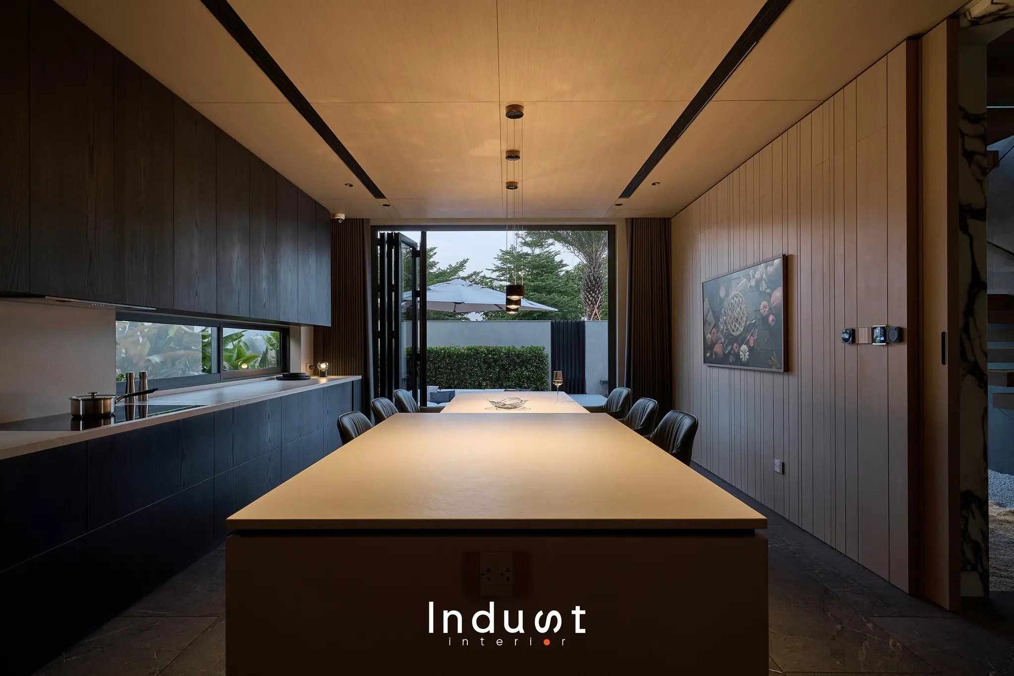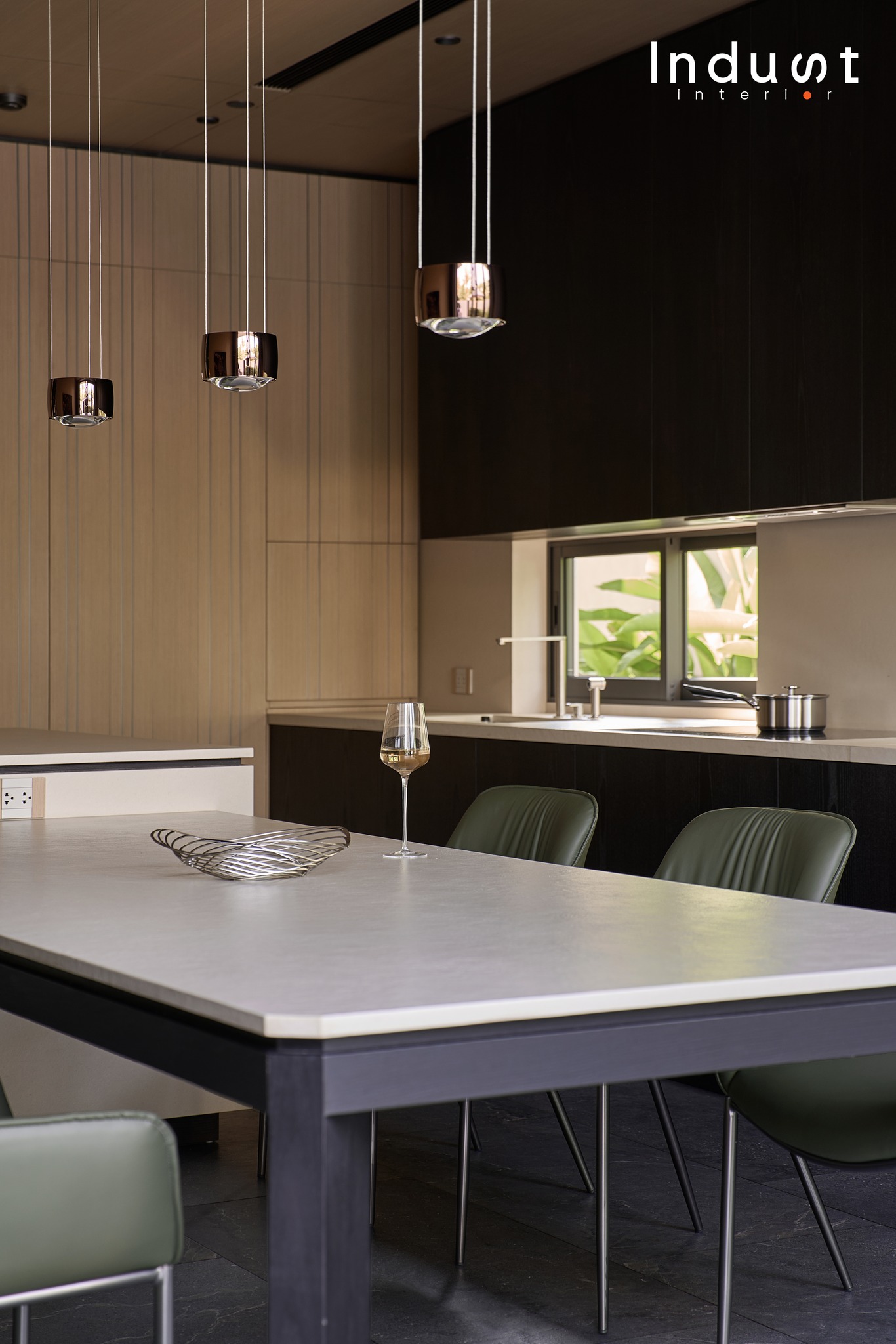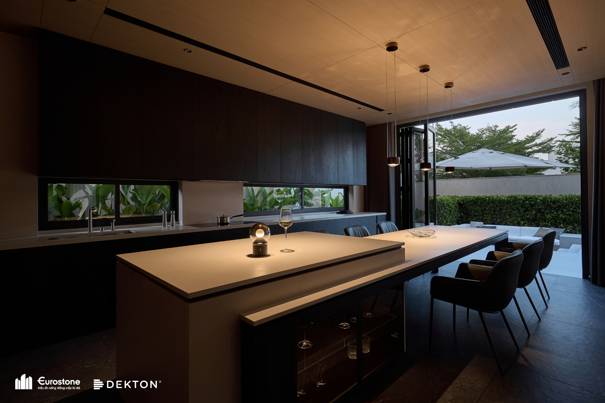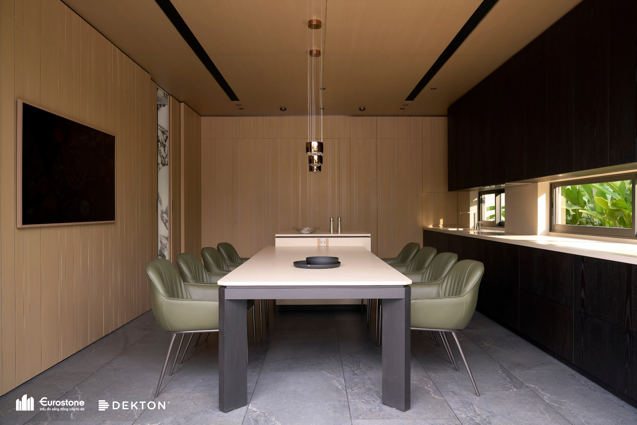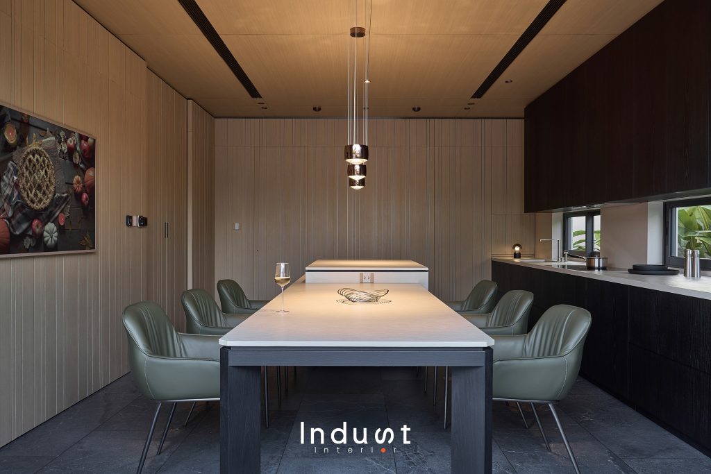 Nếu như hình khối tổng thể của Heritage Villa là phần dạo đầu trầm lắng, một tuyên ngôn về chất sống điềm đạm giữa đô thị thì không gian khách – bếp chính là nơi bản nhạc ấy bừng sáng, vang lên những cao trào thiết kế được tính toán kỹ lưỡng. Ở đây, nội thất không đóng vai phụ, mà giữ vai trò chủ thể, là điểm tụ cảm xúc, là phần lõi định hình nhịp sống cho toàn bộ căn nhà.