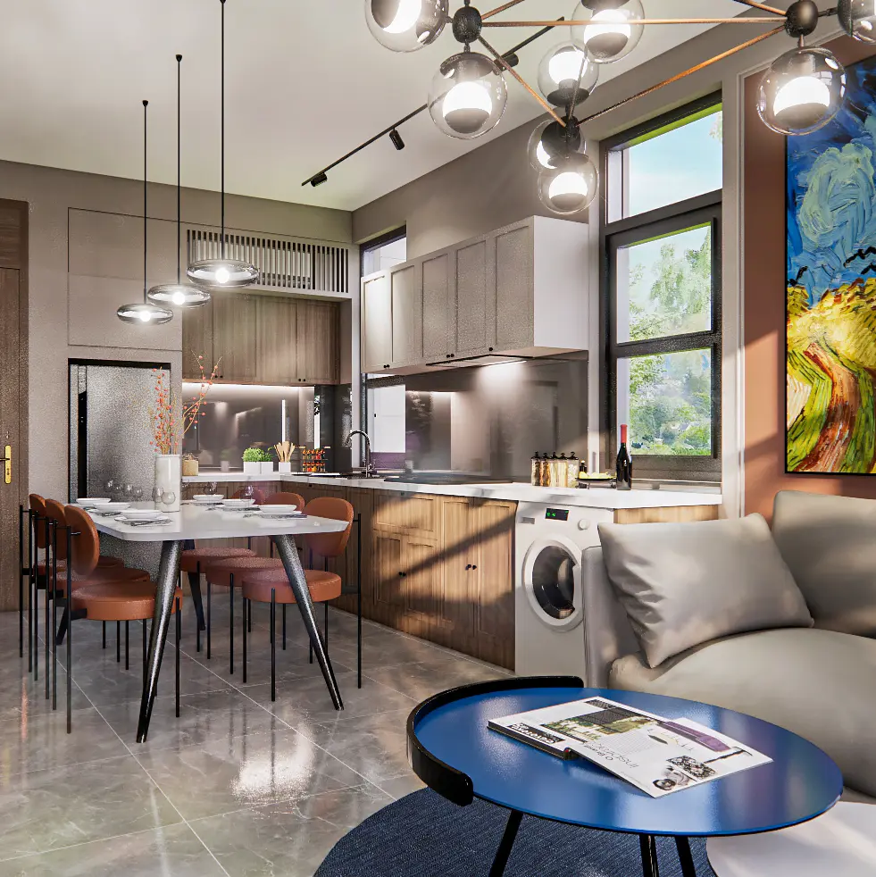 Tổ hợp thiết kế 5 căn hộ dịch vụ này là đề bài chúng tôi được nhận, với việc tối đa hoá số lượng phòng chỉ trên diện tích 2 tầng, mà vẫn đảm bảo tất cả căn hộ đều được trang bị đầy đủ tiện ích. Để thu hút tệp khách hàng mà chủ đầu tư hướng đến là những doanh nhân, nhà đầu tư hay các chuyên gia nước ngoài, chúng tôi tạo ra sự đa dạng trong thiết kế cho từng mẫu căn hộ, nhưng vẫn thống nhất trên một tổng thể hình ảnh tân cổ điển sang trọng xuyên suốt.