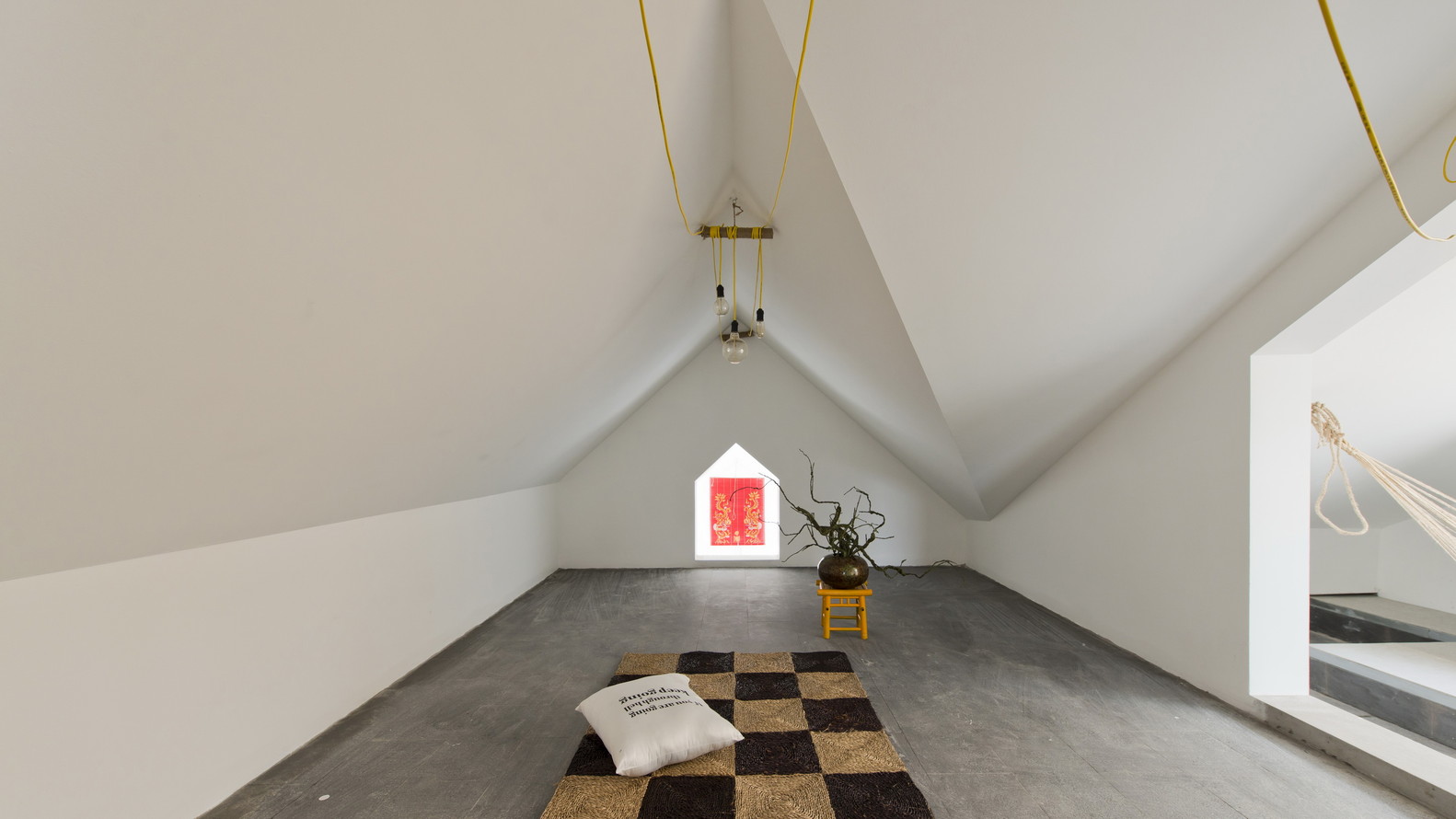 Khi thiết kế một tầng riêng biệt cho hệ thống kỹ thuật và kho chứa đồ, cả kiến ​​trúc sư và chủ nhà đều nhận thấy không gian mới này rất thú vị và tất nhiên, họ quyết định rằng nó nên là một không gian đa chức năng phục vụ cho căn hộ. Nó cũng được sử dụng để đọc sách, mắc võng, tập yoga, thiền định hoặc đơn giản là để cất giữ một số đồ lưu niệm mà chủ nhà đã sưu tầm được trong những chuyến đi.