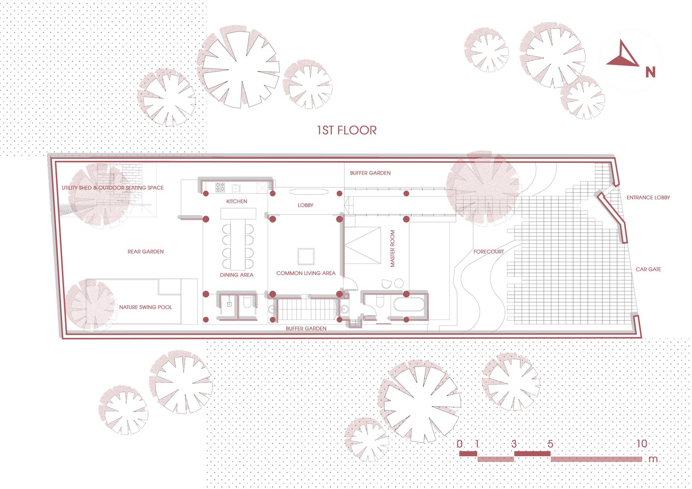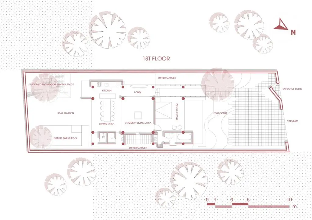 Bể nước, vừa đủ để nghịch nước, đủ an toàn như vòng tay mẹ, đủ nhỏ để kết nối với ao làng, với hồ lớn hay sông Hồng từ trên cao nhìn xuống, … nó nhỏ nhưng đủ xanh, đủ để cân bằng năng lượng âm thanh dịu nhẹ (Âm).