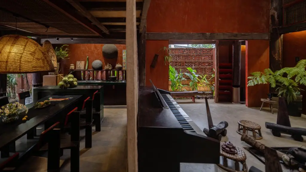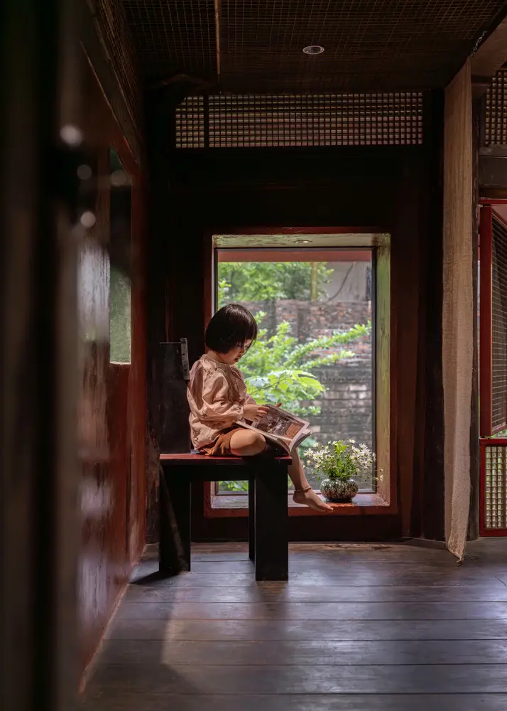 KHÔNG GIAN TÂM HỒN – Dương Lâm, một nơi nổi tiếng với những ngôi nhà truyền thống miền Bắc lợp ngói đỏ và bố cục làng quê cổ kính “cây đa, bến phà, sân nhà cộng đồng”. Bất cứ ai thuộc thế hệ trước của Đấu Khai đều có thể nhắm mắt lại và hình dung ra vẻ ngoài mát lạnh, thô ráp của ngói đỏ, mùi gỗ xưa từ những cột nhà, xà nhà, xà ngang… Tại MÔhe’ritage, người dùng chỉ cần để tâm trí lang thang trong từng ngóc ngách, từng chất liệu… để bất ngờ nhận ra rằng kiến trúc cổ vẫn còn đó, rất đẹp, rất nguyên vẹn, rất hiện đại, và vẫn rất thoải mái.