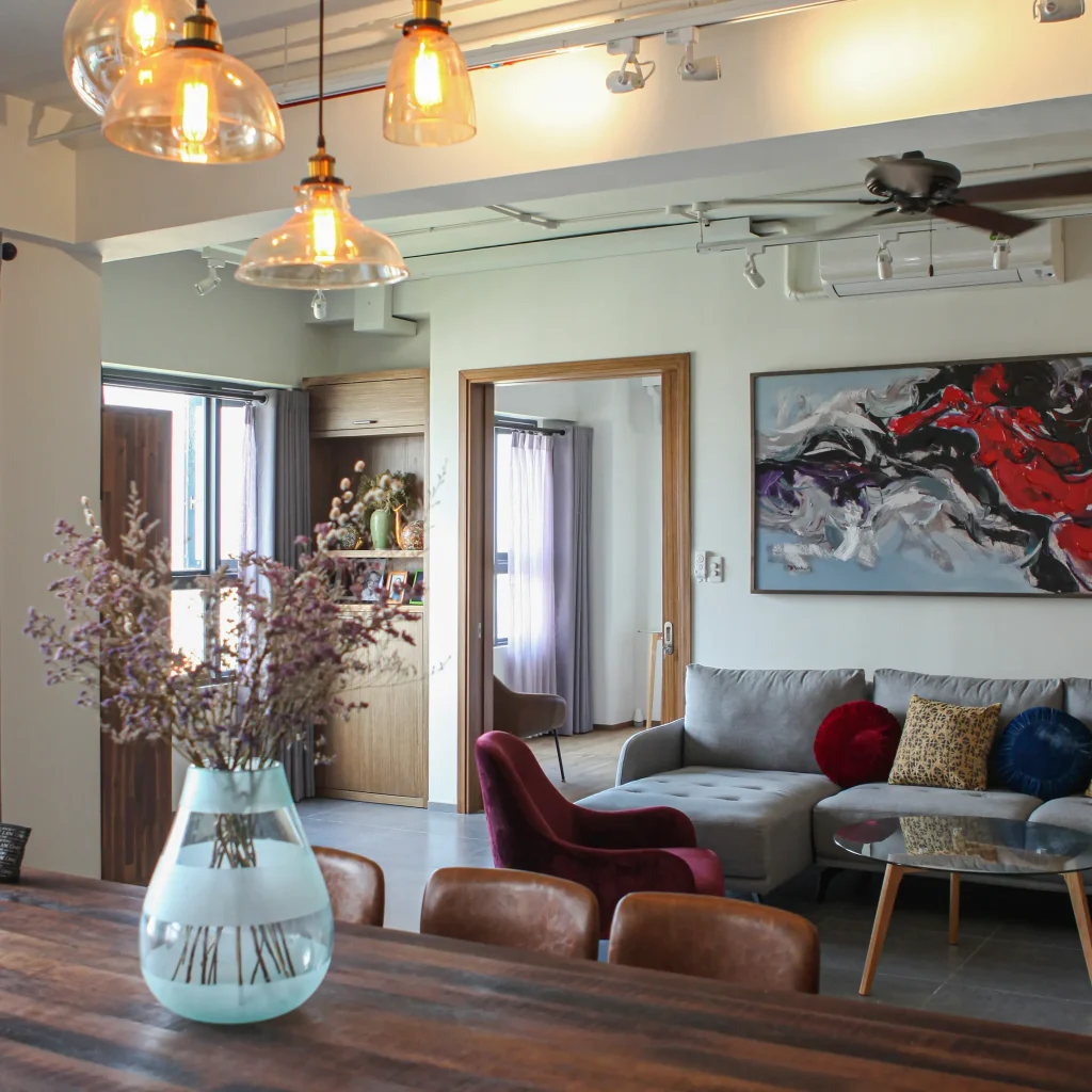 Thiết kế này là tổ ấm của một nữ hoàng sắc đẹp. Một căn hộ 3 phòng ngủ với diện tích cho từng phòng tương đối hạn chế. Để có một không gian thoáng rộng theo mong muốn của nữ chủ nhân, chúng tôi đã hi sinh 1 phòng ngủ để bổ sung diện tích cho một tổ hợp không gian xuyên suốt gồm phòng khách – phòng ăn – nhà bếp. Là một hoa hậu, nhưng cô lại ưa chuộng một không gian mộc mạc với những bề mặt vật liệu thô ráp, thay vì những phong cách nội thất hào nhoáng thường thấy.