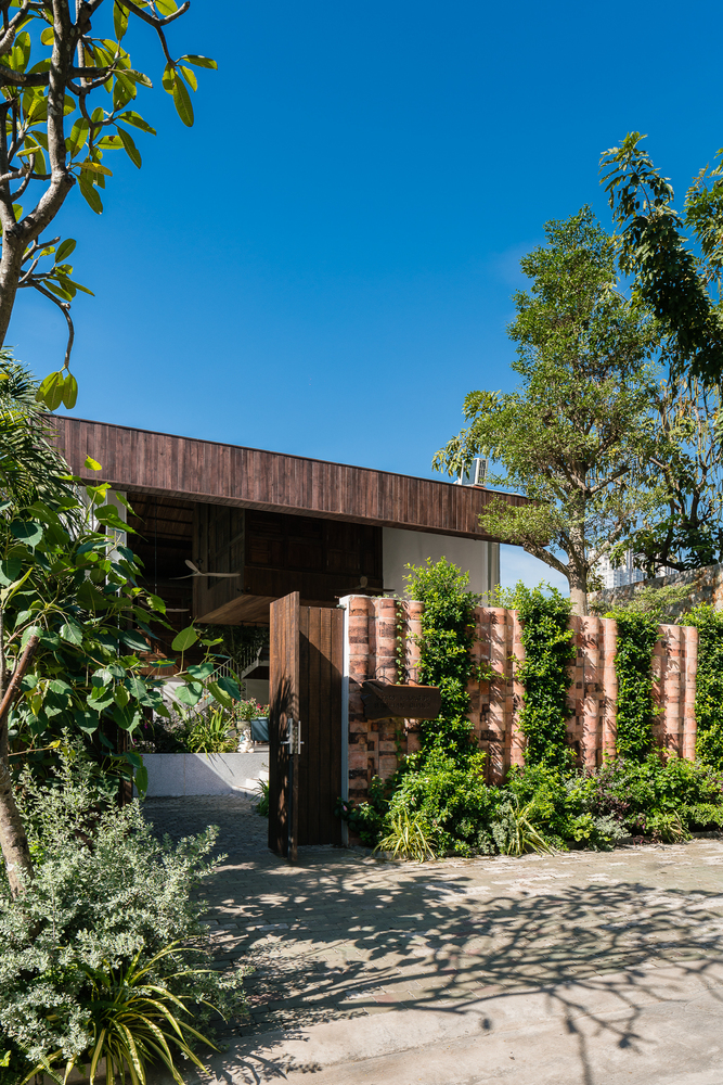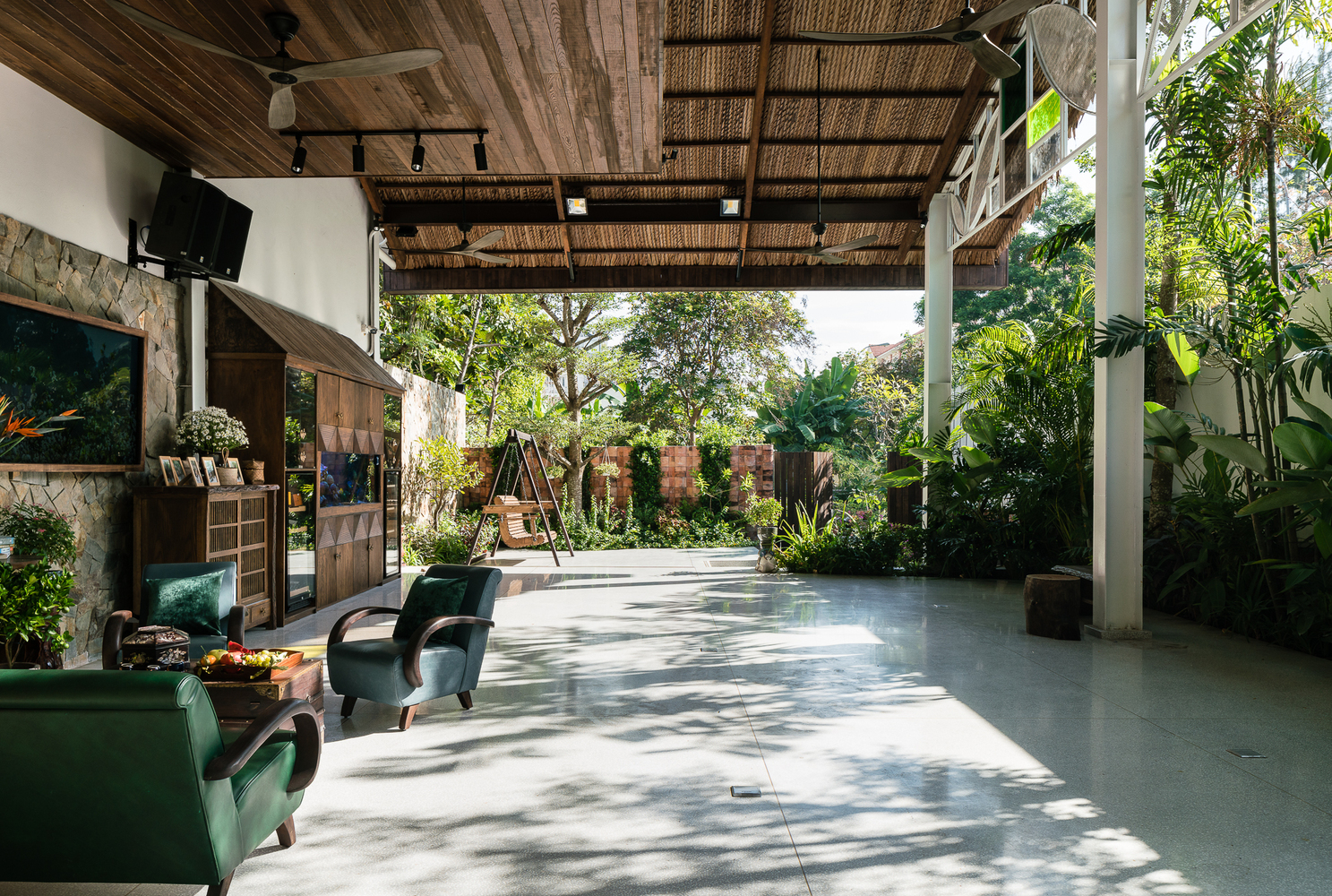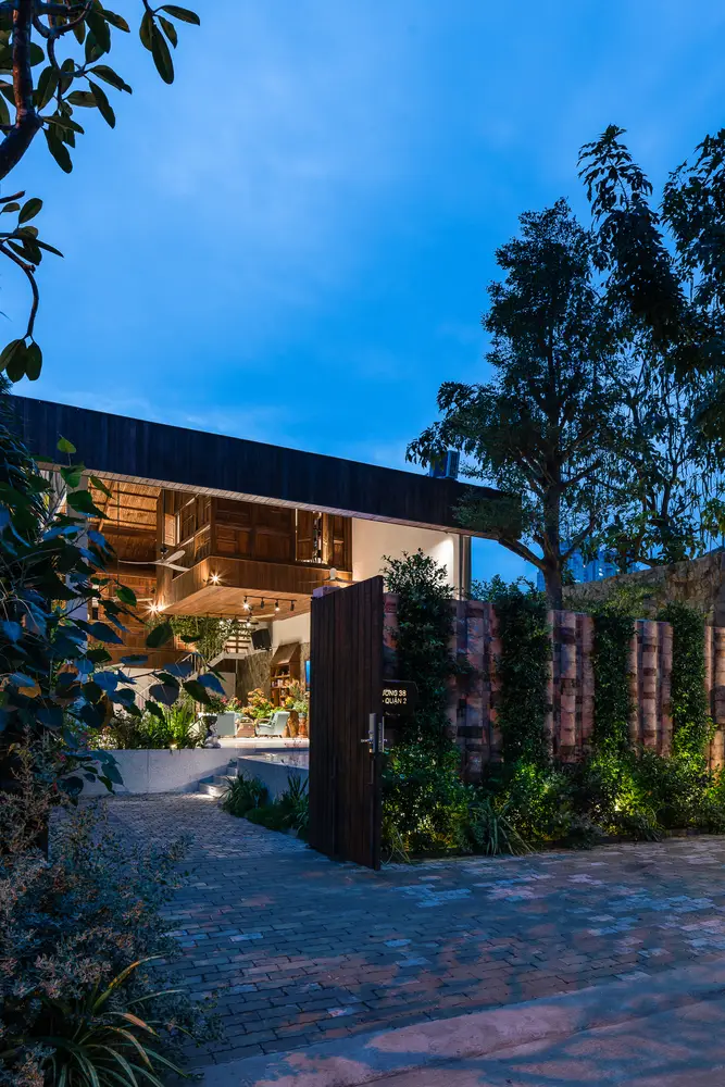 Mô tả công trình do kiến trúc sư cung cấp. Gia đình đông người của chủ nhà gần đây đã chuyển từ miền Bắc xuống miền Nam Việt Nam. Hàng tháng, họ thường tổ chức các buổi họp mặt gia đình và bạn bè tại nhà, với hàng trăm người tham dự như một truyền thống gia đình. Ngôi nhà của họ trở nên quá chật chội cho những sự kiện như vậy. Được xây dựng trên khu đất rộng 260 mét vuông, ngôi nhà “dành cho các buổi họp mặt” này được thiết kế theo cách độc đáo để mở rộng không gian tầng trệt, phòng khách và khu vực thờ cúng ra với thiên nhiên.