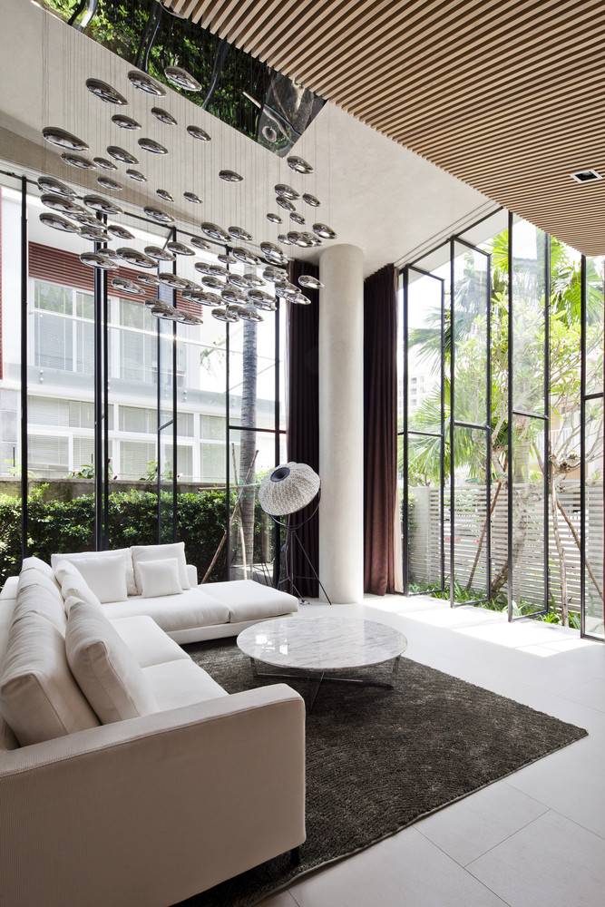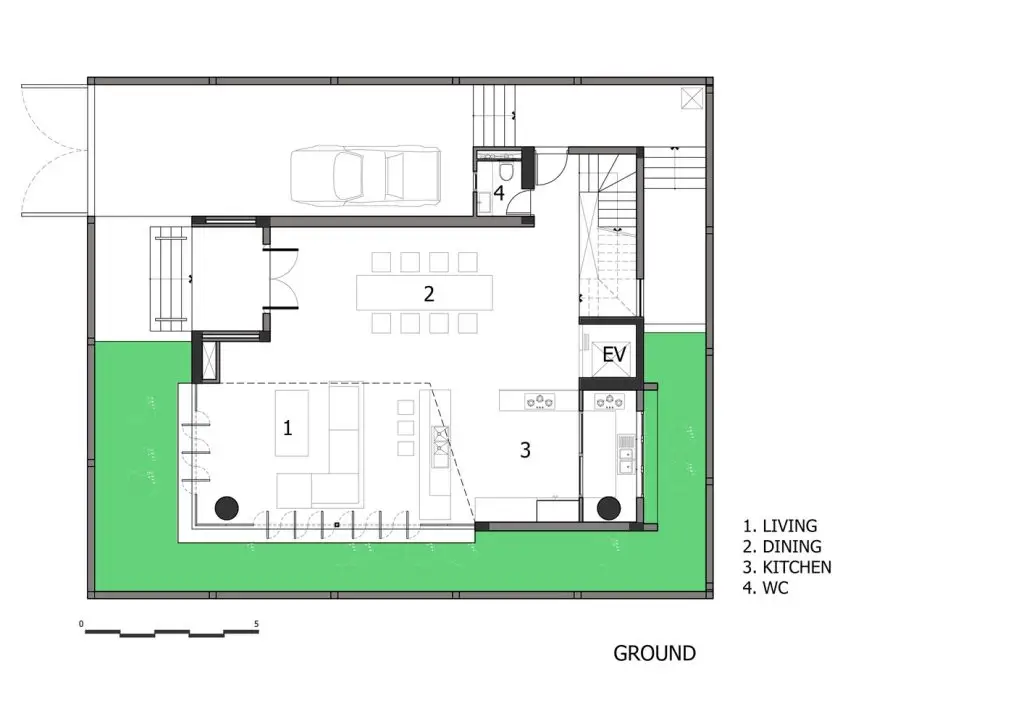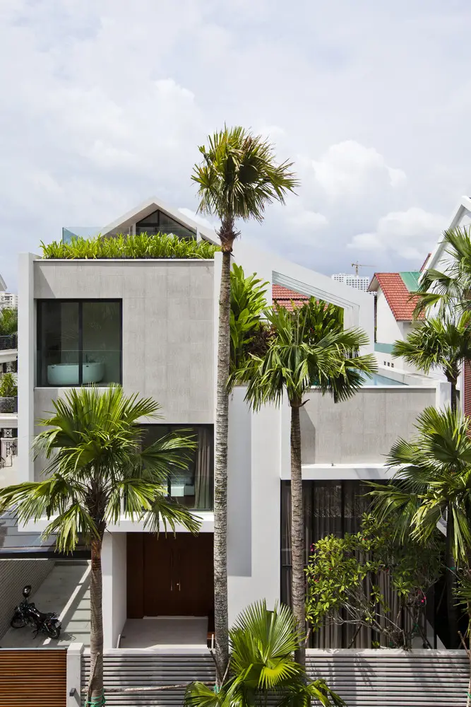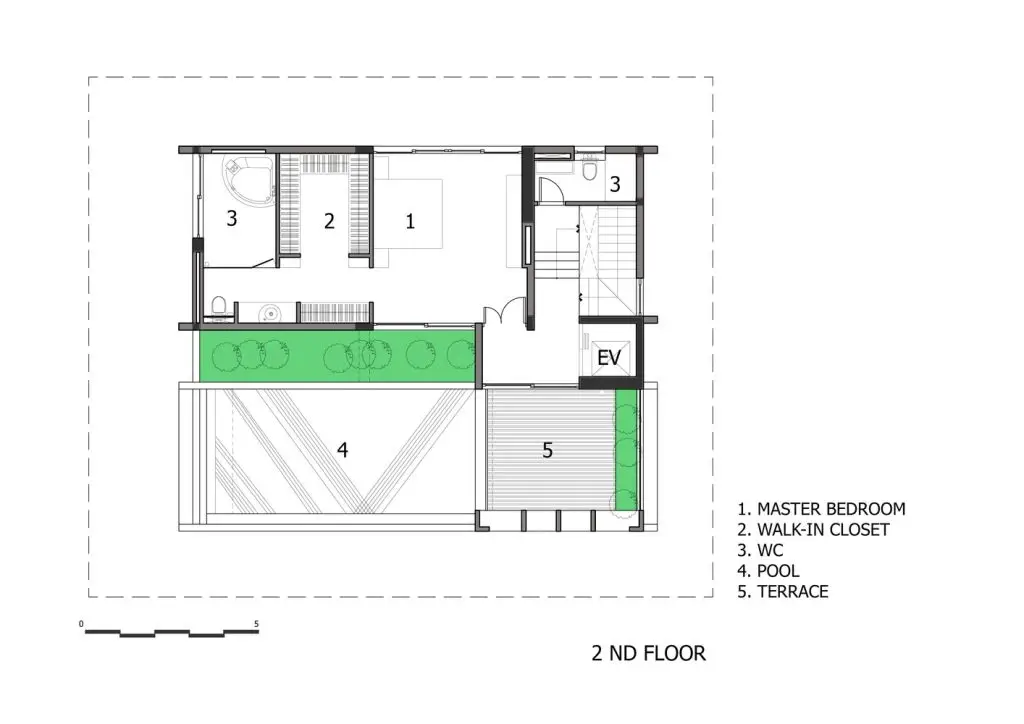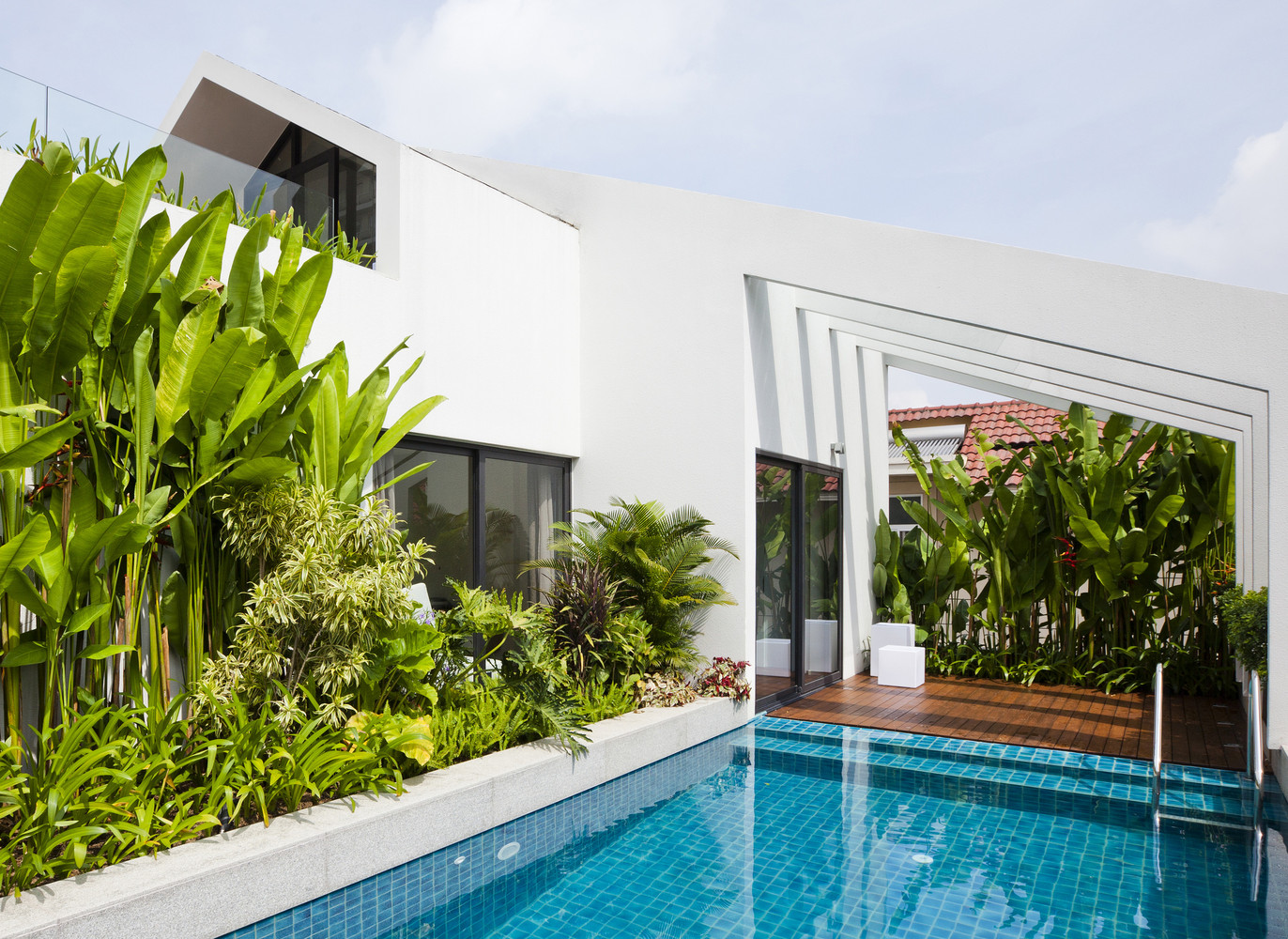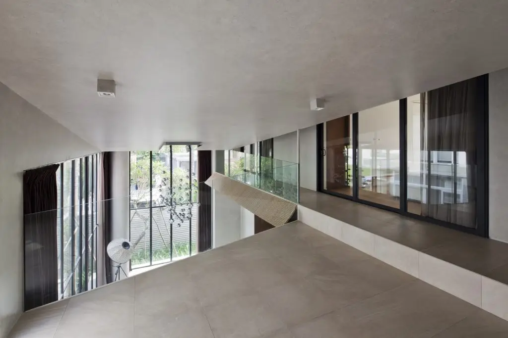 Chúng tôi cũng nâng cao vị trí bể bơi vì hai lý do. Thứ nhất, diện tích khu đất nhỏ không cho phép xây bể bơi. Thứ hai, ngay cả khi có đủ không gian, ánh nắng mặt trời cũng không thể chiếu tới khu vực bể bơi.