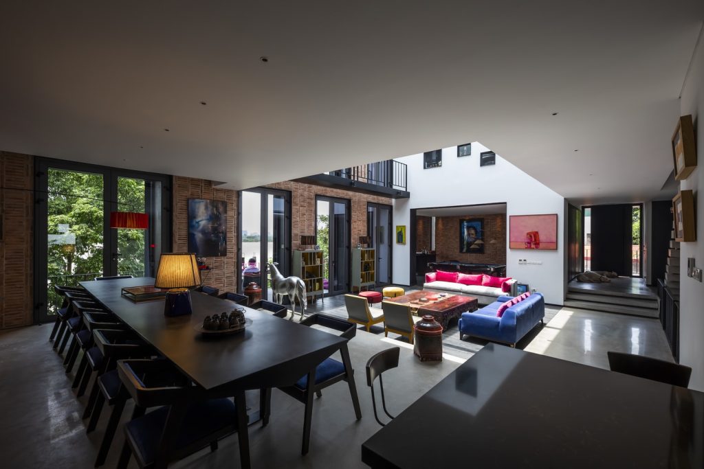 Gạch mộc – nét tương đồng giữa kiến ​​trúc truyền thống Việt Nam và Pháp, được sử dụng để mang đến cảm giác ấm cúng và hài hòa cho các chi tiết trang trí nghệ thuật. Bằng cách sáng tạo nên những viên gạch mộc mới lạ, chúng tôi đã mang đến vẻ đẹp hiện đại, thanh lịch và sang trọng cho nội thất ngôi nhà. Ngôi nhà nằm bên bờ sông Hồng, nơi lưu giữ nhiều giá trị lịch sử và văn hóa. Dòng sông đã chứng kiến ​​và đóng góp vào hàng ngàn năm lịch sử hình thành và phát triển của thủ đô Thăng Long – Đông Đô – Hà Nội.