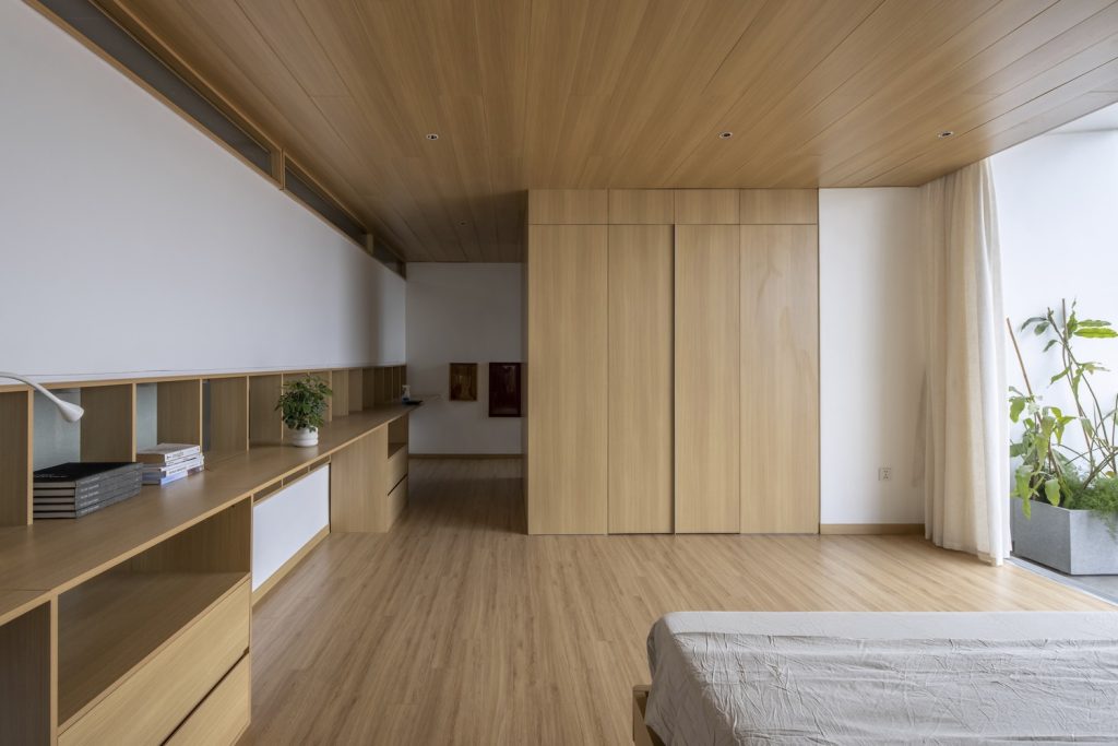 Cấu trúc không gian của RBhouse được thiết kế để thúc đẩy sự thông thoáng và luồng không khí tự nhiên giữa các không gian. Sơ đồ mặt bằng so le tạo ra sự liên tục về mặt thị giác giữa các tầng, cho phép ánh sáng và không khí lưu thông tự do hơn trong nhà. Thiết kế này loại bỏ ranh giới truyền thống giữa các tầng riêng biệt, giúp việc di chuyển theo chiều dọc trở nên dễ dàng đồng thời nâng cao trải nghiệm tổng thể về sự rộng rãi. Việc bố trí các loại cây bản địa và khu vườn hướng Đông Nam phía trên khu vực phòng khách và nhà bếp giúp điều hòa nhiệt độ và tích hợp thiên nhiên vào trải nghiệm sống hàng ngày.