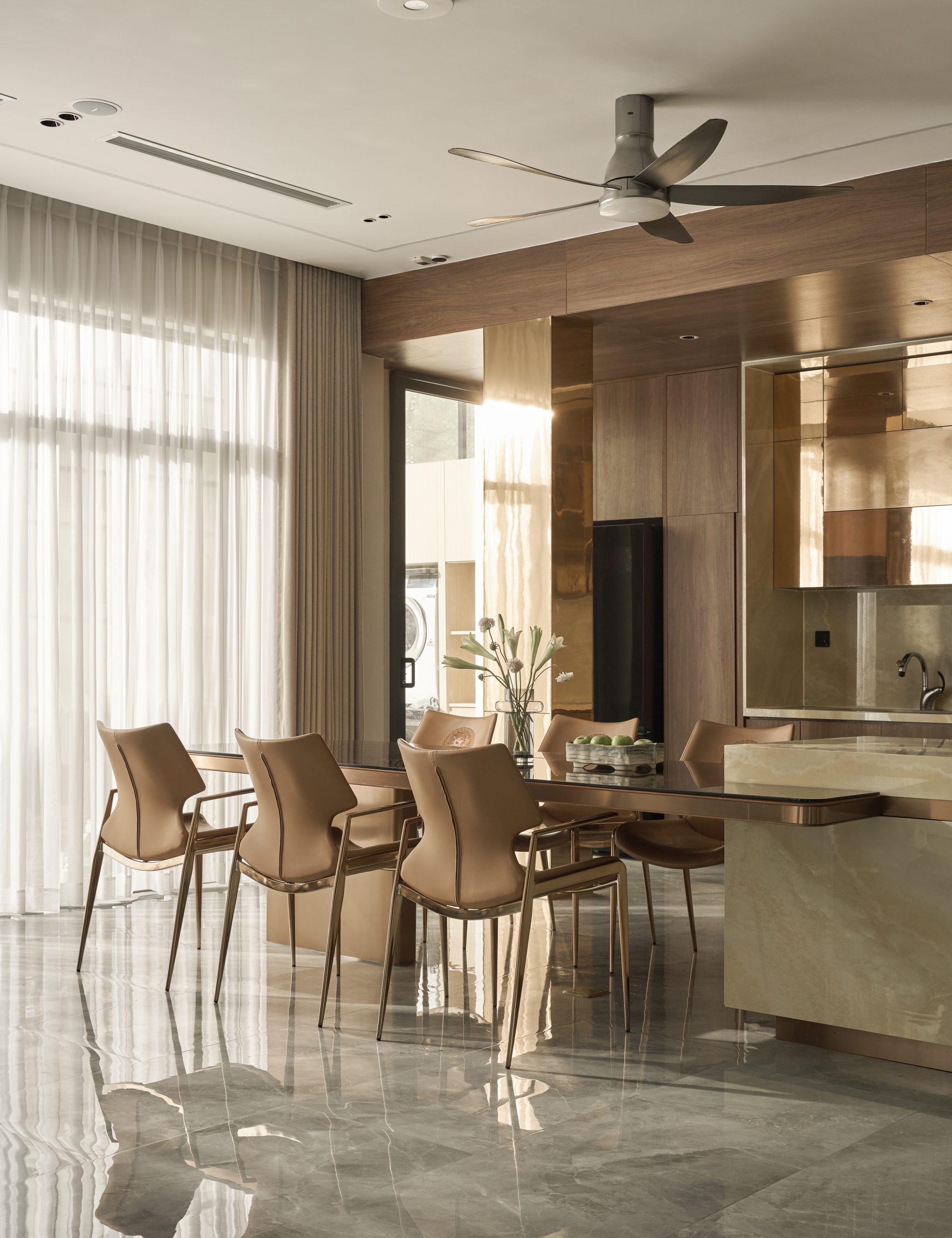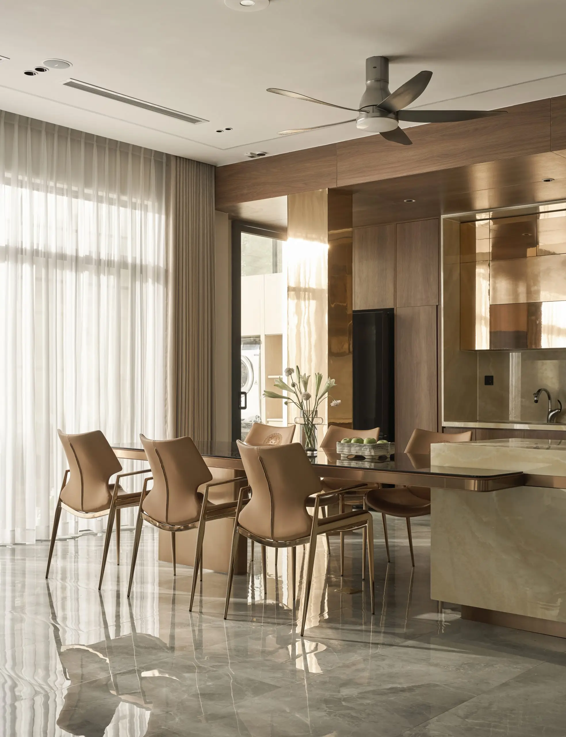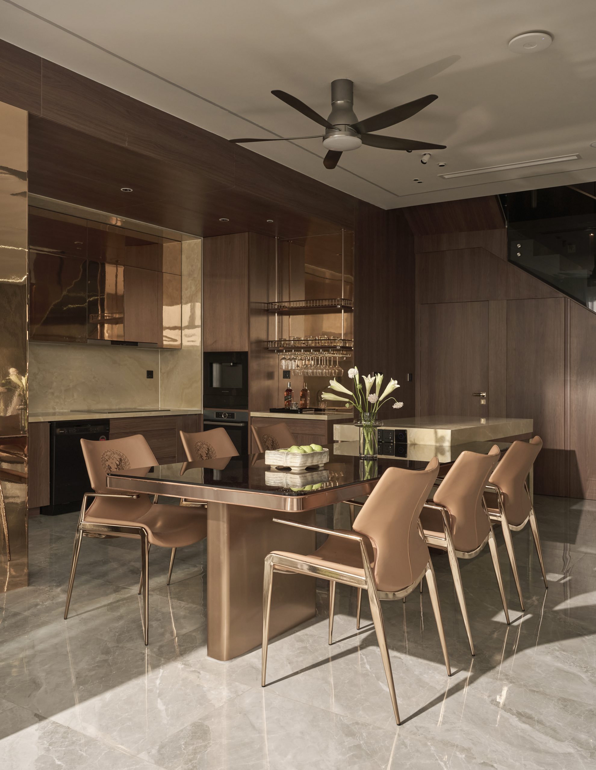 Ricky’s Villa được kiến tạo theo tinh thần Modern Luxury, nơi sự sang trọng không phô trương mà thể hiện qua cách tổ chức không gian chặt chẽ, vật liệu được chọn lọc tinh tế và ánh sáng được xử lý khéo léo. Tổng thể công trình mang cảm giác thoáng đãng, liền mạch, với những mảng gỗ ấm, đá tự nhiên và bề mặt hoàn thiện cao cấp đan xen hài hòa, tạo nên một không gian sống vừa hiện đại vừa giàu chiều sâu cảm xúc.