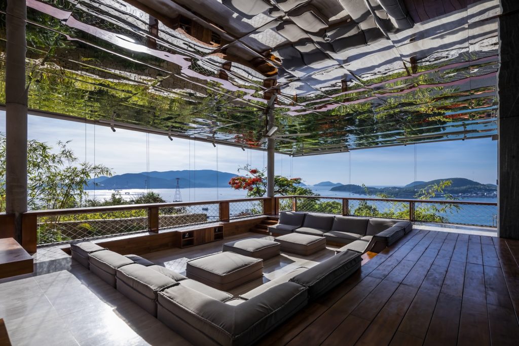 Tầng thượng, giống như tầng một, cũng có các hoạt động giải trí với bể sục lớn ngoài trời, sân golf mini và khu vực tắm nắng ngoài trời trải cát. Trái ngược với sự đơn giản trong hình khối kiến trúc, nhiều hiệu ứng thẩm mỹ và yếu tố chức năng nhằm tạo ra trải nghiệm khó quên cho khách, đồng thời tối đa hóa giá trị chính của biệt thự – vẻ đẹp của phong cảnh mà bạn có thể chiêm ngưỡng từ mọi góc độ.