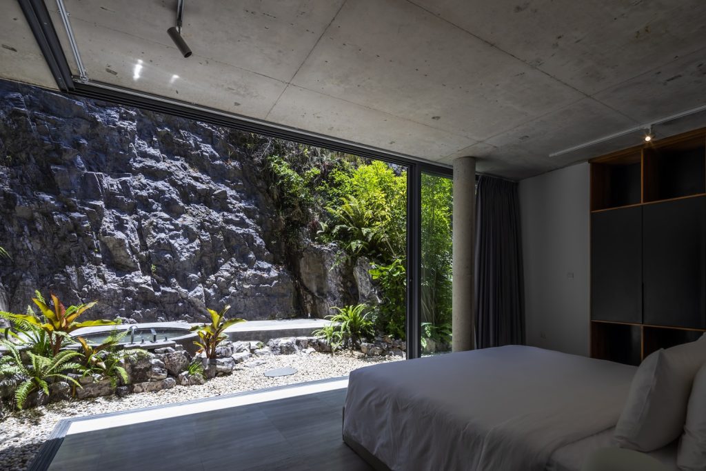 Với những cửa sổ lớn từ sàn đến trần, năm phòng ngủ trên tầng hai hoàn toàn hòa mình vào khung cảnh thiên nhiên. Tất cả các phòng tắm đều được thiết kế mở, ngăn cách với phòng ngủ bằng một vách ngăn. Nội thất theo phong cách tối giản và các phòng ngủ mang đến cảm giác như đang lơ lửng trên không trung bao la của cảnh quan xung quanh, tất cả nhằm mục đích nâng cao trải nghiệm của khách.