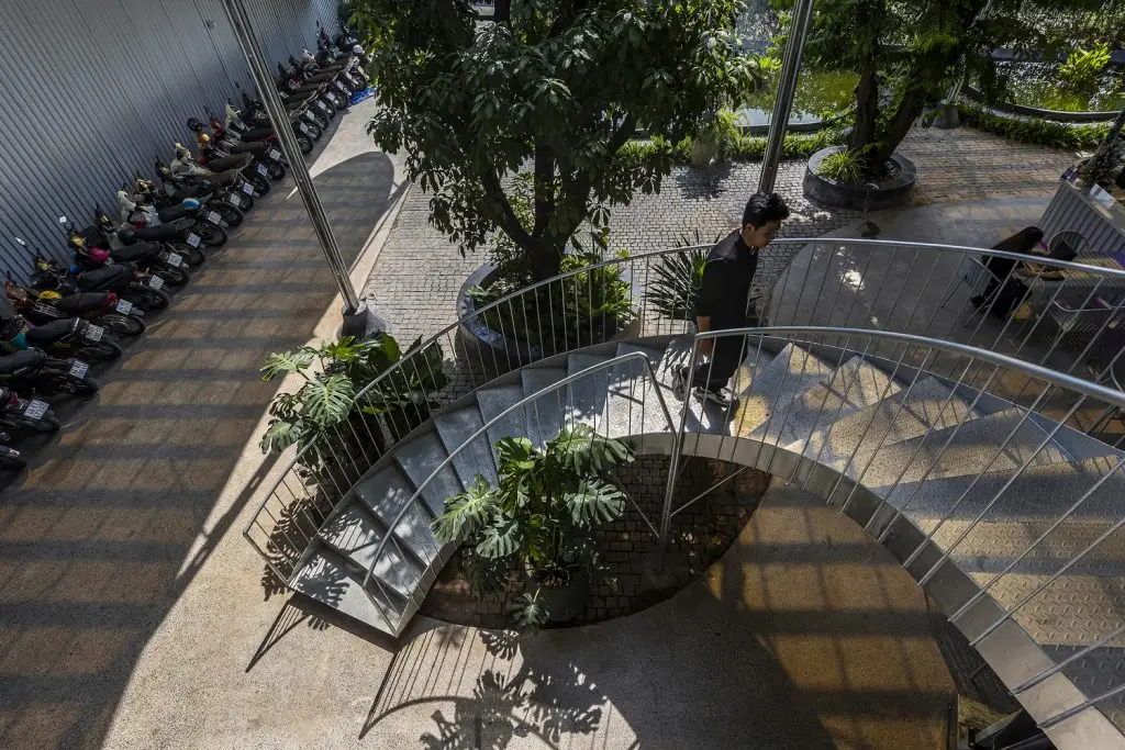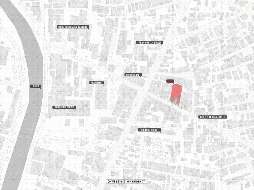 Mô tả văn bản do các kiến trúc sư cung cấp. Với một số thay đổi trong chính sách xã hội của Việt Nam, nhà kho và nhà máy không còn được phép xây dựng trong các khu dân cư, và chính quyền buộc phải tháo dỡ hoặc chuyển đổi công trình sang mục đích sử dụng phù hợp khác. Việc cải tạo toàn bộ một tòa nhà văn phòng hoặc khu chung cư đòi hỏi một khoản tiền lớn vượt quá khả năng của chủ đầu tư dự án. Hơn nữa, với thời gian thực hiện dự án dài, các nhà đầu tư sẽ khó thu hồi vốn. Nhờ các cuộc thảo luận và tham vấn, chúng tôi đã thuyết phục được chủ đầu tư cải tạo công trình cũ, thực hiện các phương án sửa chữa và cải tạo hư hỏng, đồng thời nâng cấp và chuyển đổi dự án thành một công trình mới.