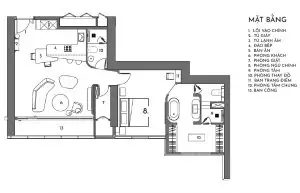Thiết kế chú trọng sự tối giản trong vật dụng nội thất. Phòng khách và phòng ăn không có vách ngăn, nhằm tạo sự thoáng đãng, rộng rãi và tăng không khí sum vầy, ấm cúng cho khu vực sinh hoạt chung