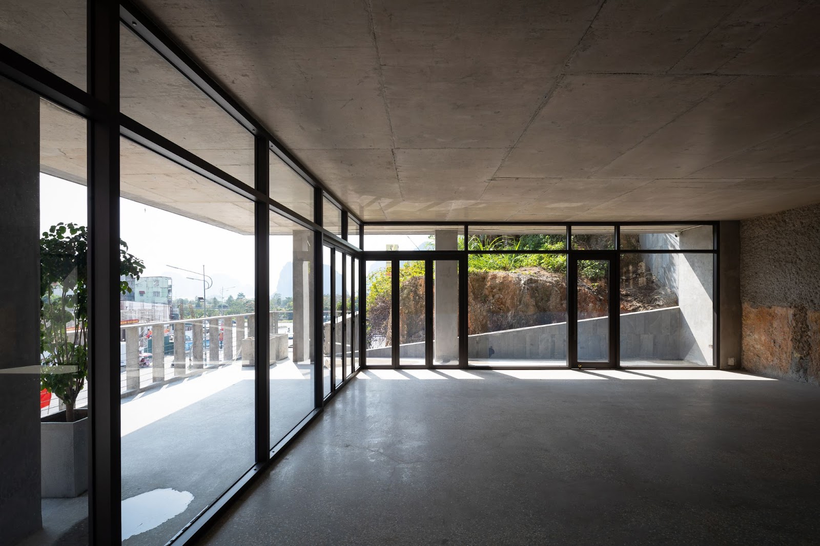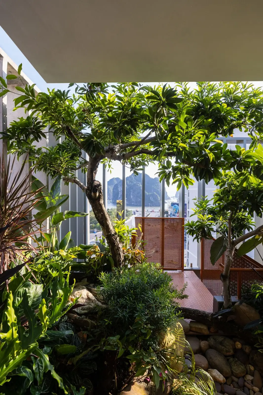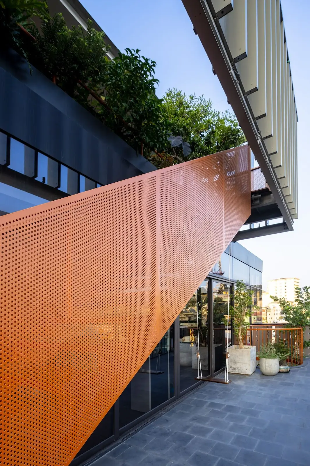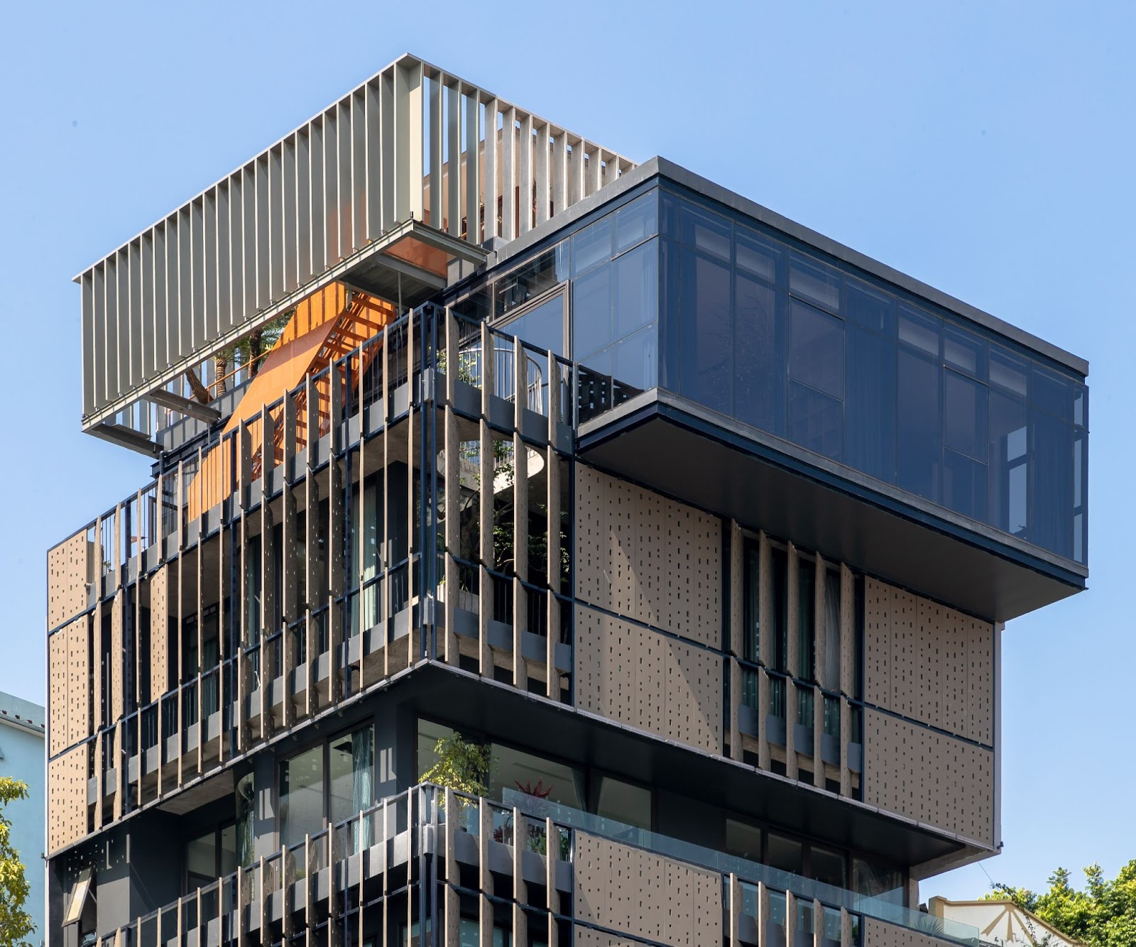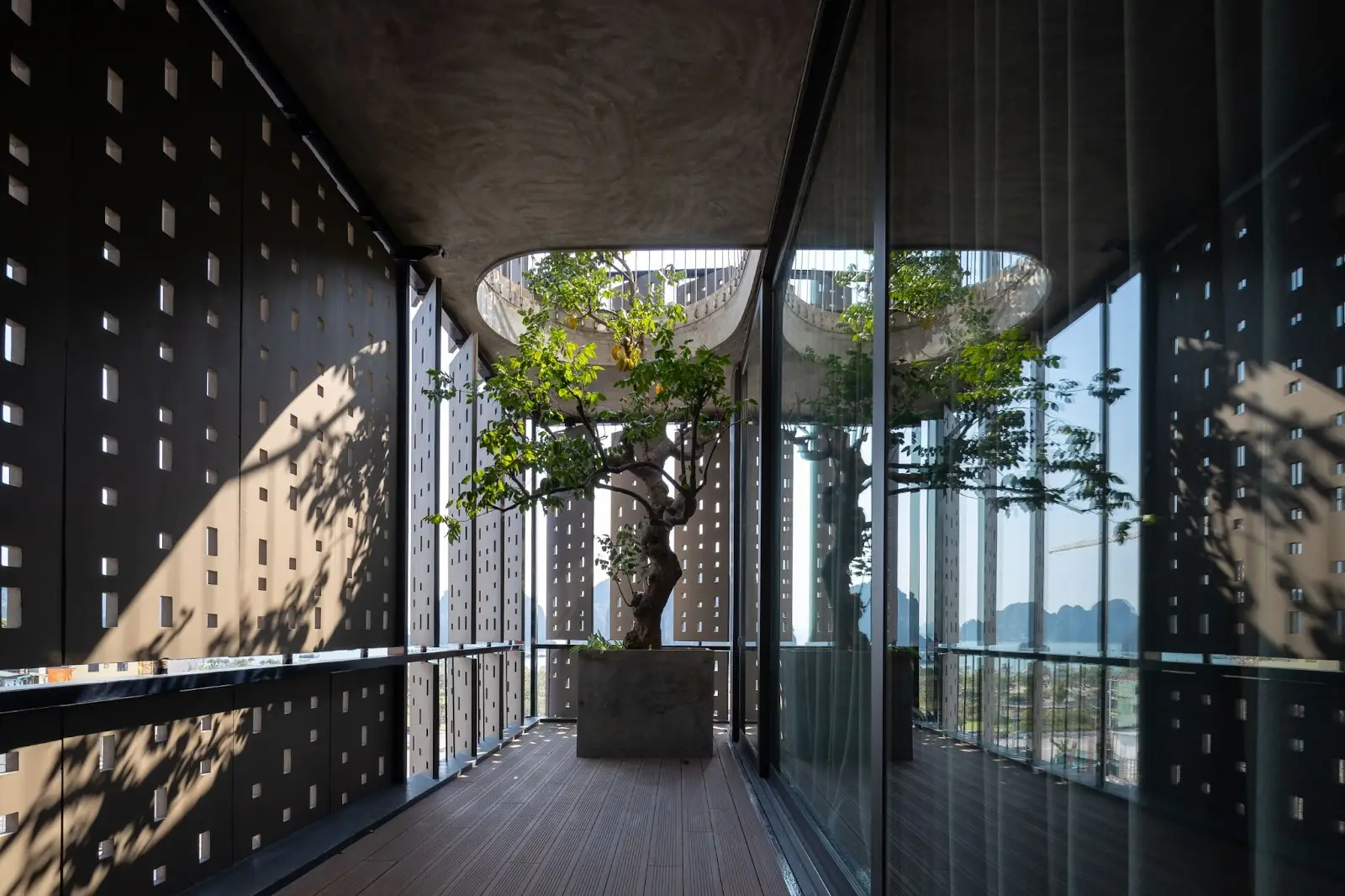 Các kiến trúc sư phải đối mặt với một tình huống khó khăn là phải xem xét đến khía cạnh an toàn, vững chãi của mặt tiền nhưng cũng phải tính đến sự kết nối giữa nội – ngoại thất và cảnh quan. Giải pháp là hệ thống che phủ hai lớp giống như phương pháp kiến trúc truyền thống. Kính bên trong kết nối với ánh sáng tự nhiên đồng thời ngăn chặn gió biển và tiếng ồn đô thị. Lớp bên ngoài là các tấm bê tông đục lỗ nhẹ có tác dụng giống như một chiếc kệ cứng bảo vệ bên trong khỏi môi trường tự nhiên khắc nghiệt. Người dùng có thể mở và đóng các lớp này để phù hợp với nhu cầu cá nhân của họ.