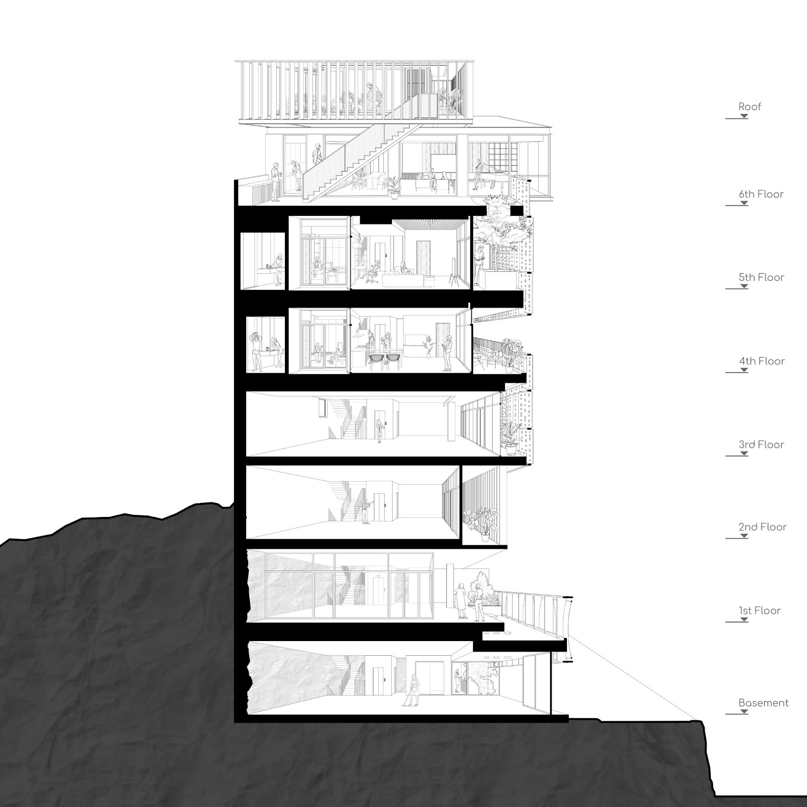 Công trình có một chức năng phức tạp: các tầng thấp hơn dành cho thuê và các tầng cao hơn, nơi không khí yên tĩnh hơn, cảnh biển mở rộng cho phép tầm mắt vươn tới tận chân trời là nơi để gia chủ tận hưởng không gian riêng của mình.