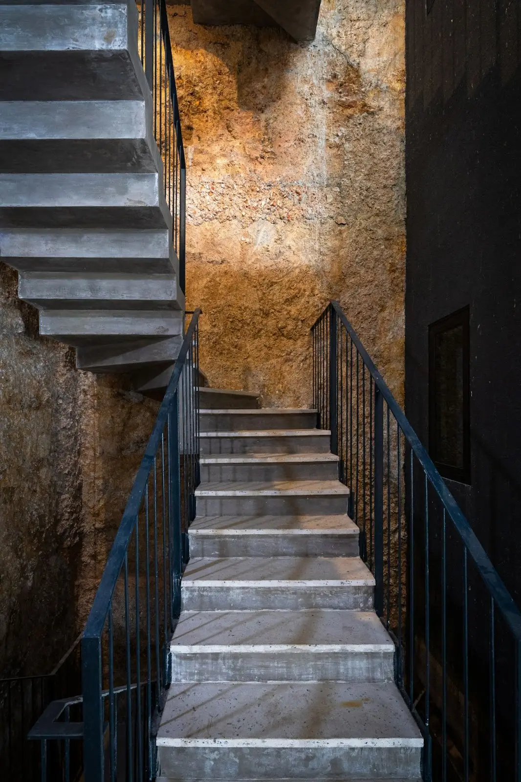 Công trình có một phần khoét sâu vào ngọn đồi; bằng phương pháp thi công đặc biệt, kiến trúc sư đã vô tình tạo nên một bức tường đất tự nhiên đầy hấp dẫn. Sự vô tình này được giữ lại nhằm gia tăng sự kết nối với các yếu tố địa phương cả về vật chất và tinh thần.
