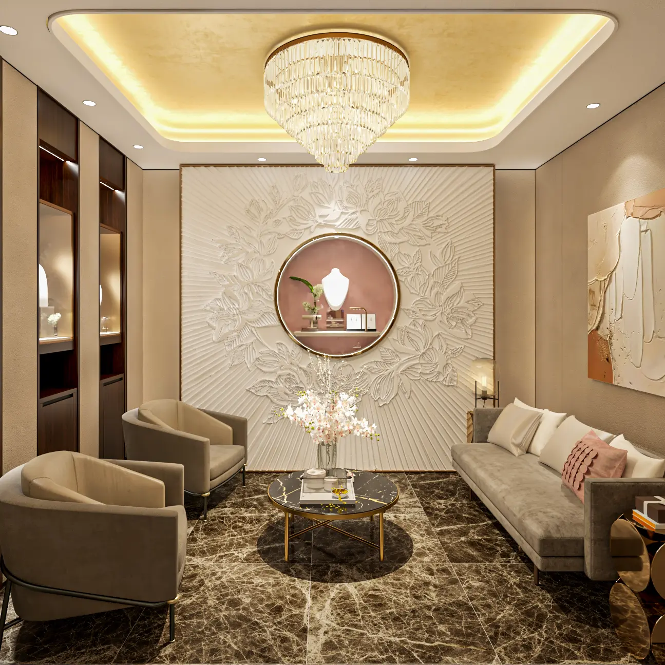 Đây là một trong những cửa hàng trang sức có vị trí đắt đỏ nhất tại thành phố Hồ Chí Minh, vì vậy không gian trải nghiệm cũng đòi hỏi một thiết kế xứng tầm. Những chi tiết tinh xảo và sang trọng, cuốn lấy ảnh nhìn và lưu trong tâm trí hình ảnh kiêu sa tựa như một nhành hoa mộc lan. Để khách hàng sẽ mãi lưu luyến cảm giác lấp lánh khi bản thân được khảm lên mình những viên kim cương rực rỡ.