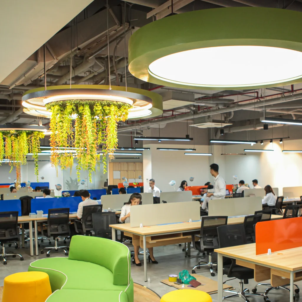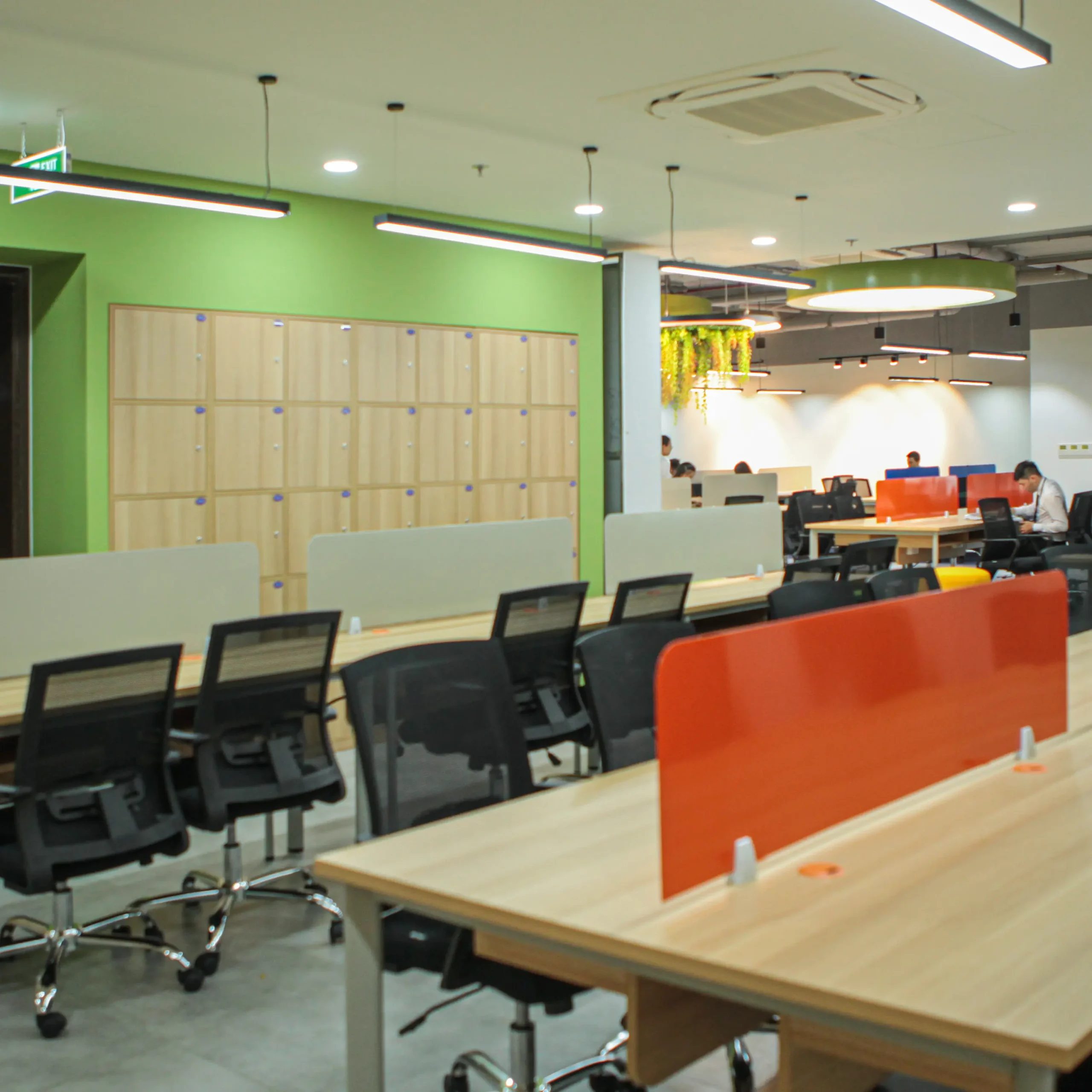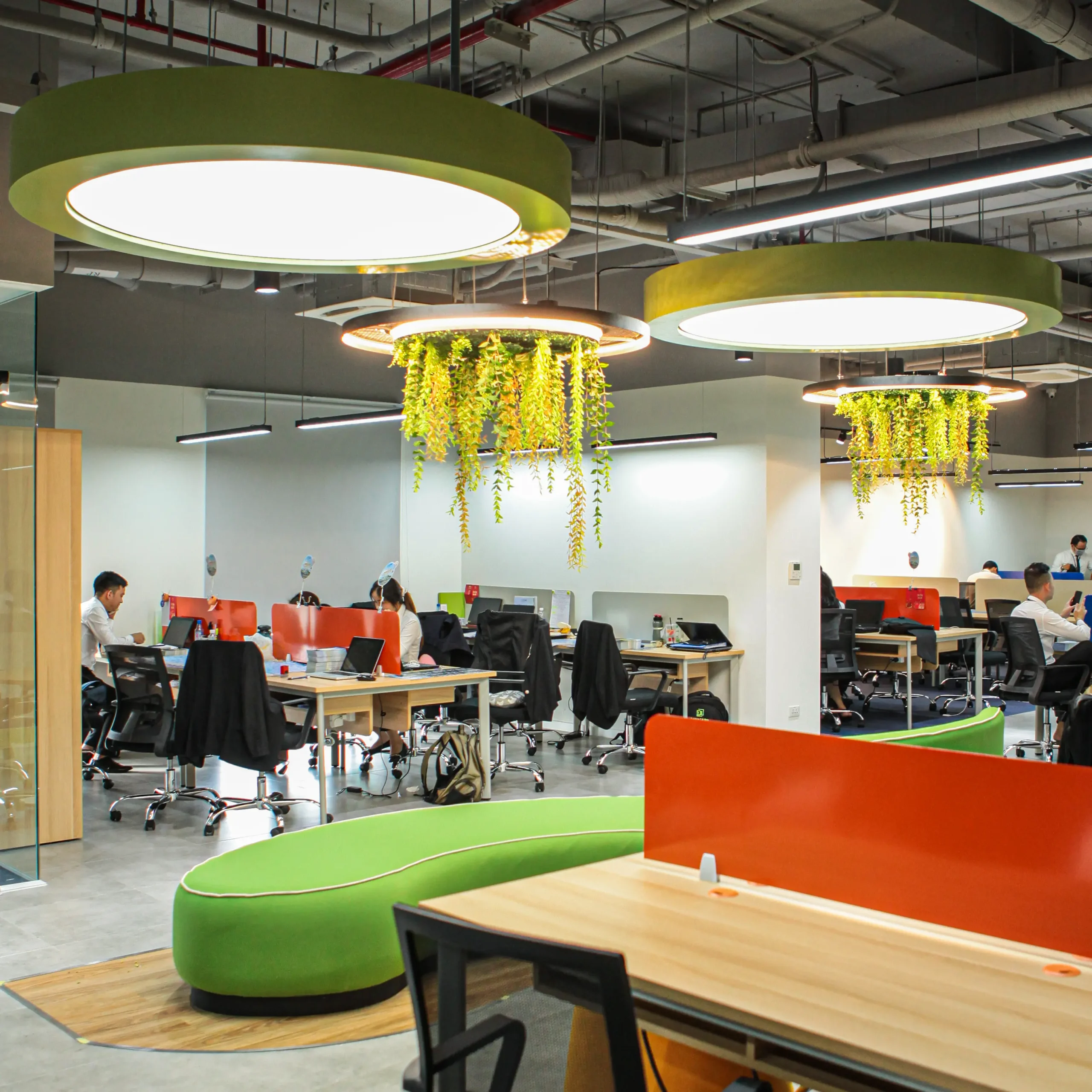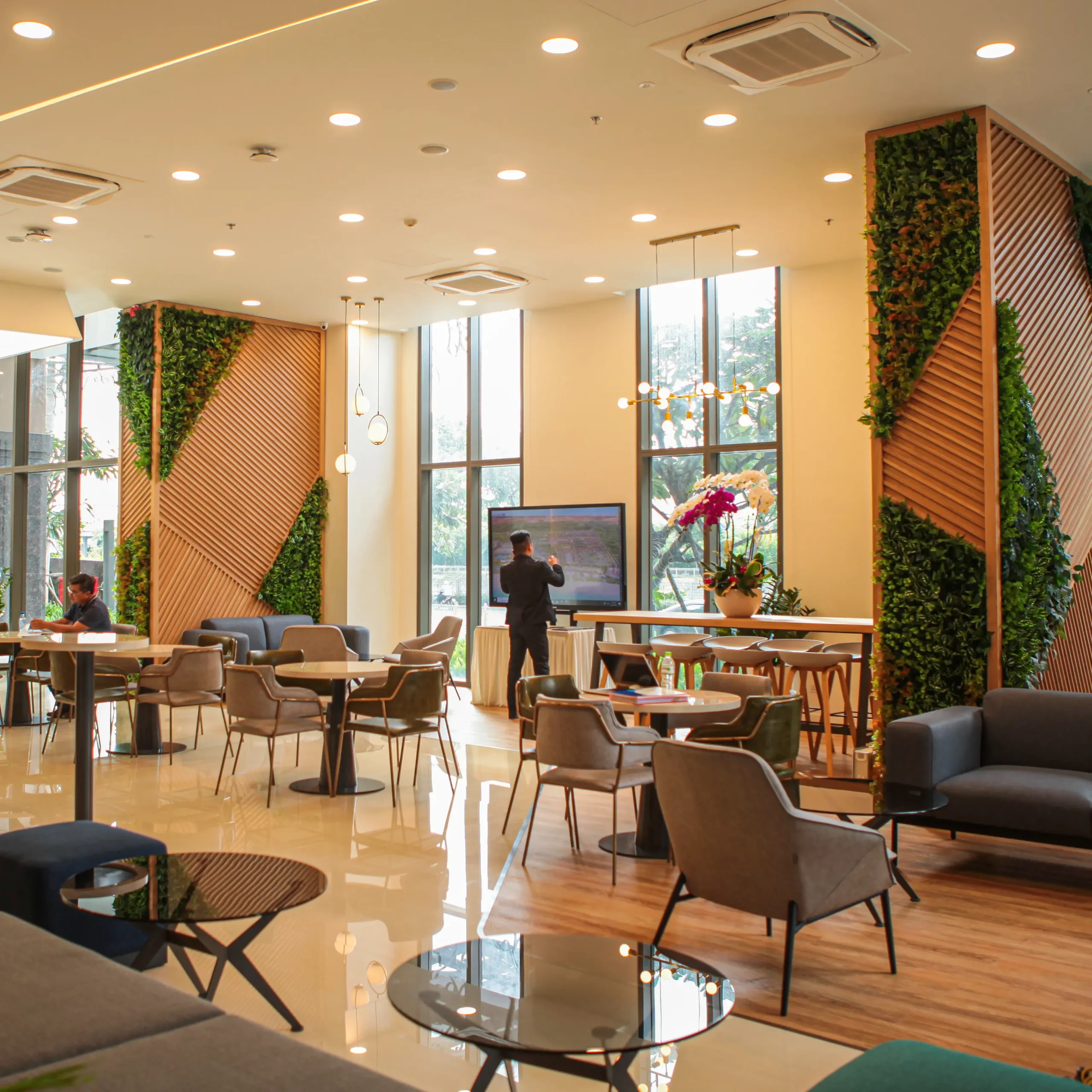 Đây là một toà nhà 2 tầng. Tầng 1 là không gian gặp gỡ khách hàng của giao dịch viên. Hình ảnh chỉn chu, ấm cũng và thân mật, giúp những thương vụ trở nên suôn sẽ hơn bao giờ hết. Tầng 2 là văn phòng, nơi nhân viên dành hầu hết thời gian trong ngày. Cây xanh là một giải pháp cải thiện tinh thần hiệu quả. Không gian thoáng mở với điểm nhìn sinh động từ thiên nhiên, để 8 tiếng văn phòng không còn áp lực.