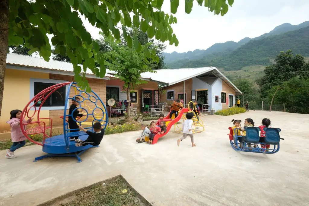 Được tài trợ bởi TOTO Việt Nam và Tập đoàn Gieo Tin Yeu, ngôi trường được trang bị đầy đủ phòng học, phòng sinh hoạt chung, nhà vệ sinh và sân chơi với đầy đủ tiện nghi. Nhờ đó, 64 em nhỏ tại Chiềng Ban giờ đây đã có một môi trường học tập ấm áp và an toàn, không còn phải học trong một nhà kho cũ kỹ dột nát, mà đã có một sân chơi rộng rãi, thoải mái cho các em vui chơi và học tập.