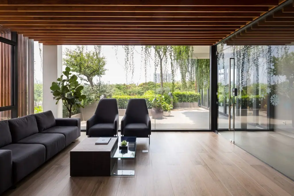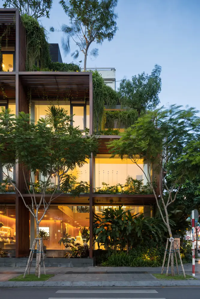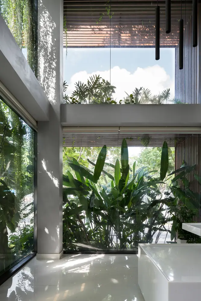 Được bao bọc bởi một lớp cây xanh quanh tòa nhà, mọi không gian văn phòng bên trong đều có tầm nhìn thoáng đãng ra bề mặt xanh mát. Hệ thống không gian xanh tương tự được tiếp tục trên mỗi tầng, tạo sự giao thoa thị giác giữa các tầng, góp phần nâng cao trải nghiệm thú vị tại mỗi không gian.