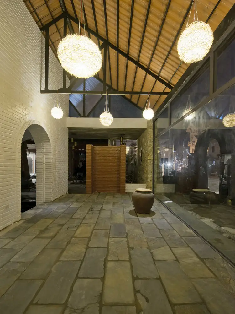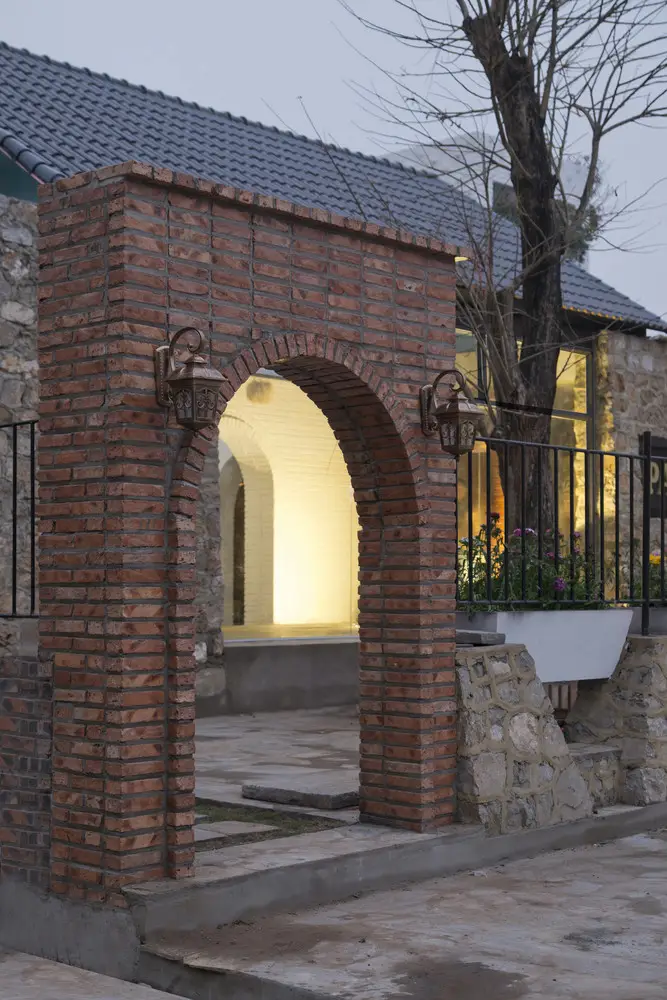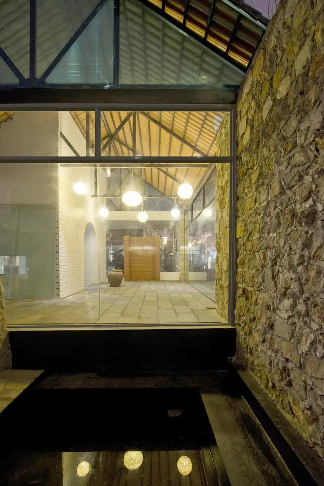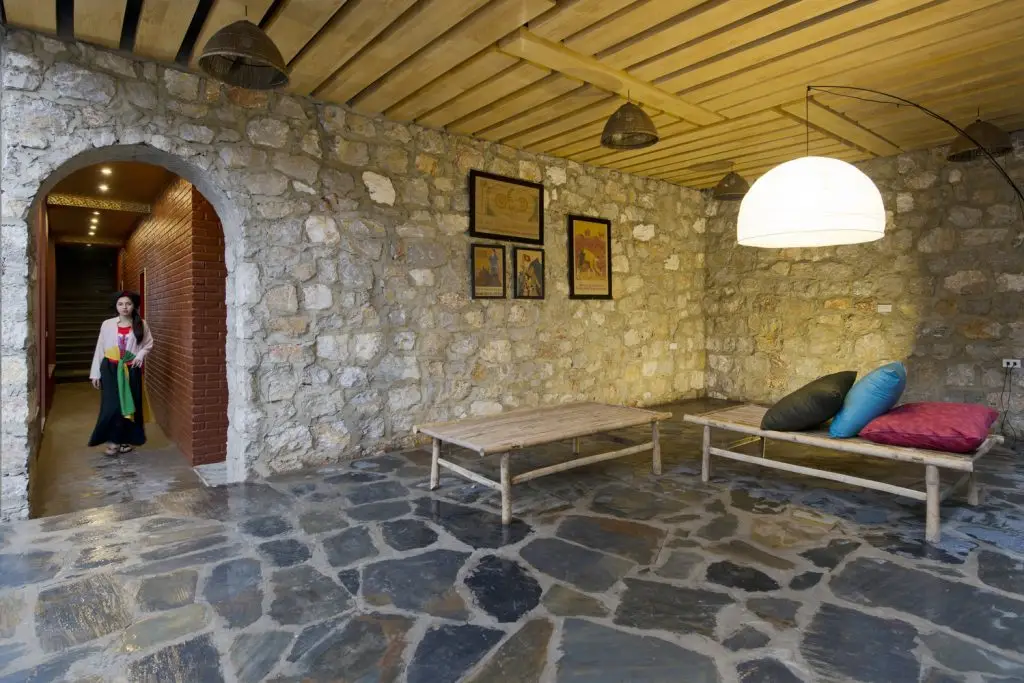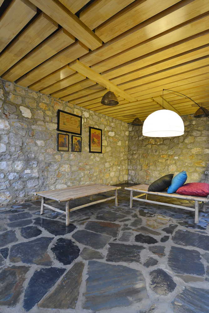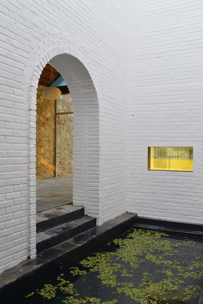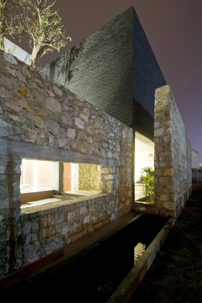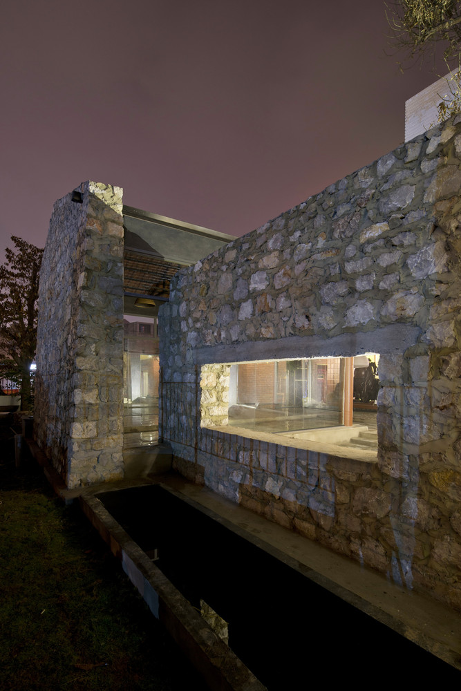 Công trình được tạo nên từ một loạt các bức tường đá (đá được lấy từ khu vực địa phương, do người dân địa phương xây dựng theo phương pháp truyền thống). Những bức tường dày 70 cm được kết hợp để tạo ra những không gian kiến trúc tương phản: Kín – Mở, Bên trong – Bên ngoài, Cũ – Mới, Mềm mại – Thô ráp.