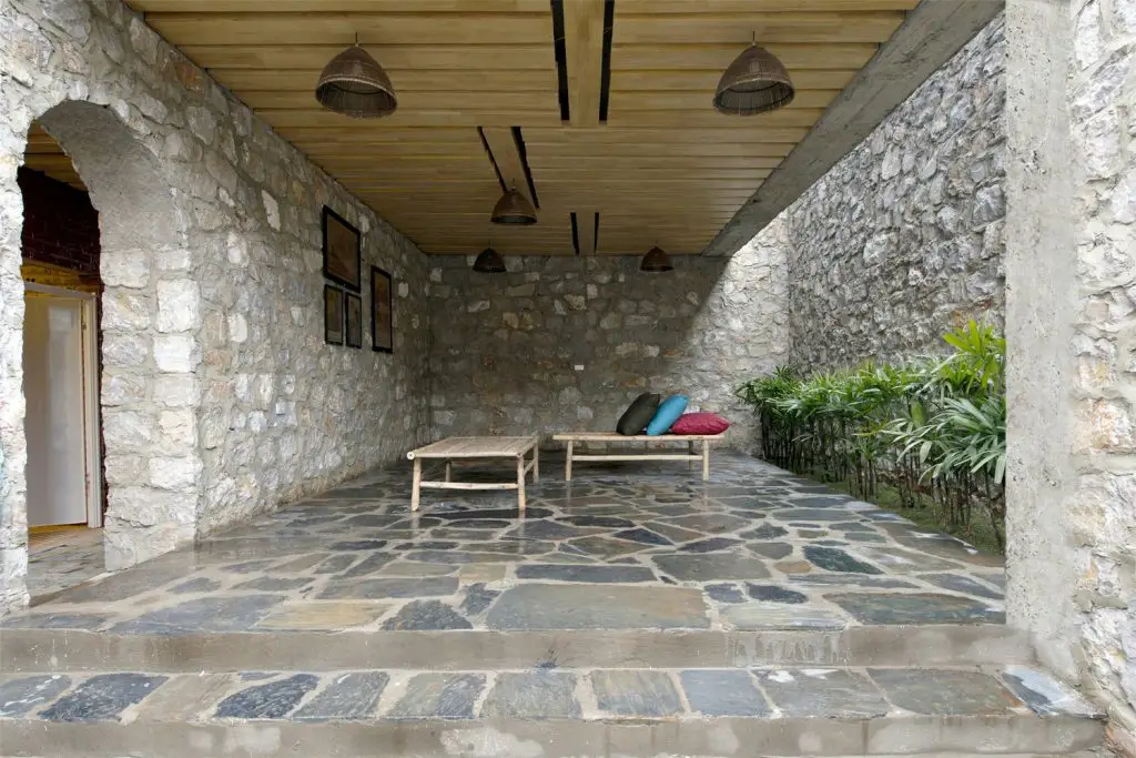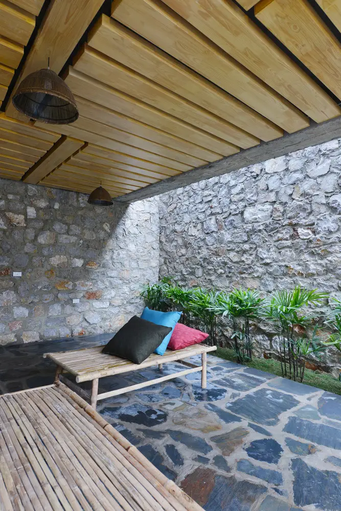 Trong không gian rỗng, chúng ta “lọt” vào khối nhà và ngược lại. Nhờ không gian rỗng này, các yếu tố tự nhiên như nắng, mưa, gió trực tiếp đi vào nhà. Điều này giúp ngôi nhà trở nên thân thiện với môi trường, đồng thời mang đậm nét đặc trưng nhiệt đới và truyền thống.