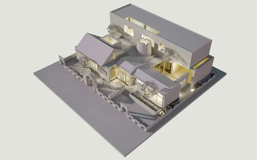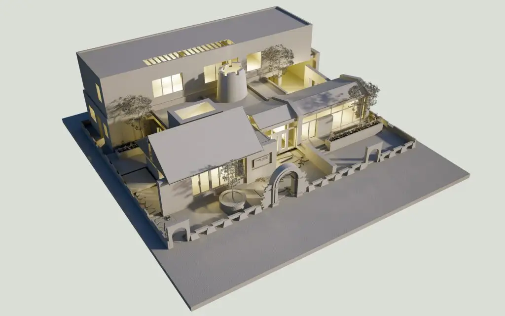 Ngôi nhà được chia thành các không gian độc lập có thể đi vào từ sảnh chính và mỗi không gian mang đến cho chủ nhân một cảm giác khác nhau. Ý tưởng thiết kế không gian được lấy cảm hứng từ kiến trúc truyền thống miền Bắc Việt Nam: