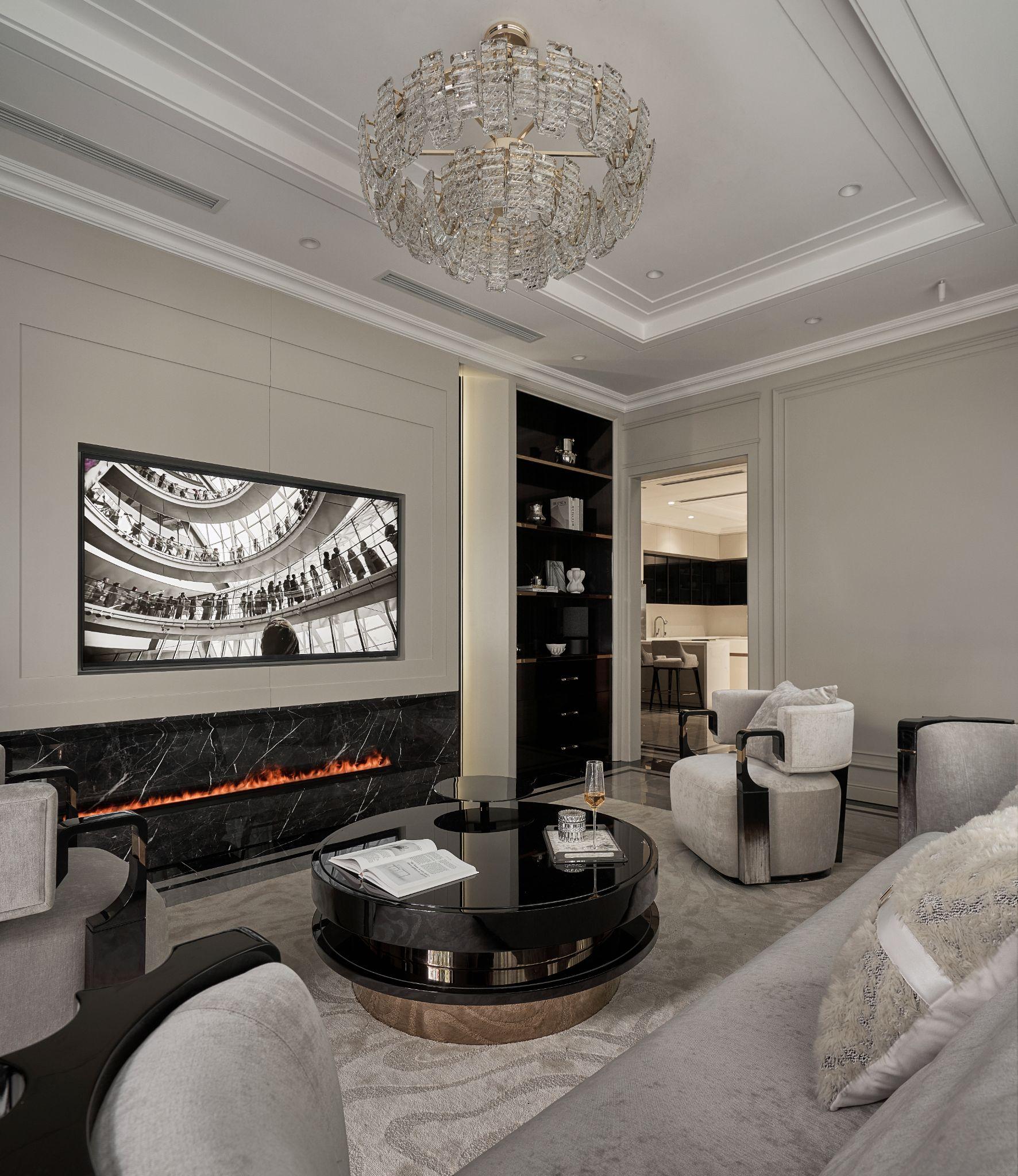Ánh sáng tự nhiên và nhân tạo được xử lý như một lớp vật liệu mềm. Sự phản chiếu trên bề mặt đá marble cùng các chất liệu bóng mờ tạo thành chuỗi chuyển động ánh sáng liên tục, giúp không gian thay đổi theo từng thời điểm trong ngày. Đây là một trong những điểm nhấn giúp công trình giữ được chất “sống” tự nhiên.