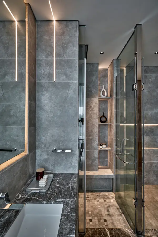 Nhà tắm tone màu xám sang trọng, sạch sẽ