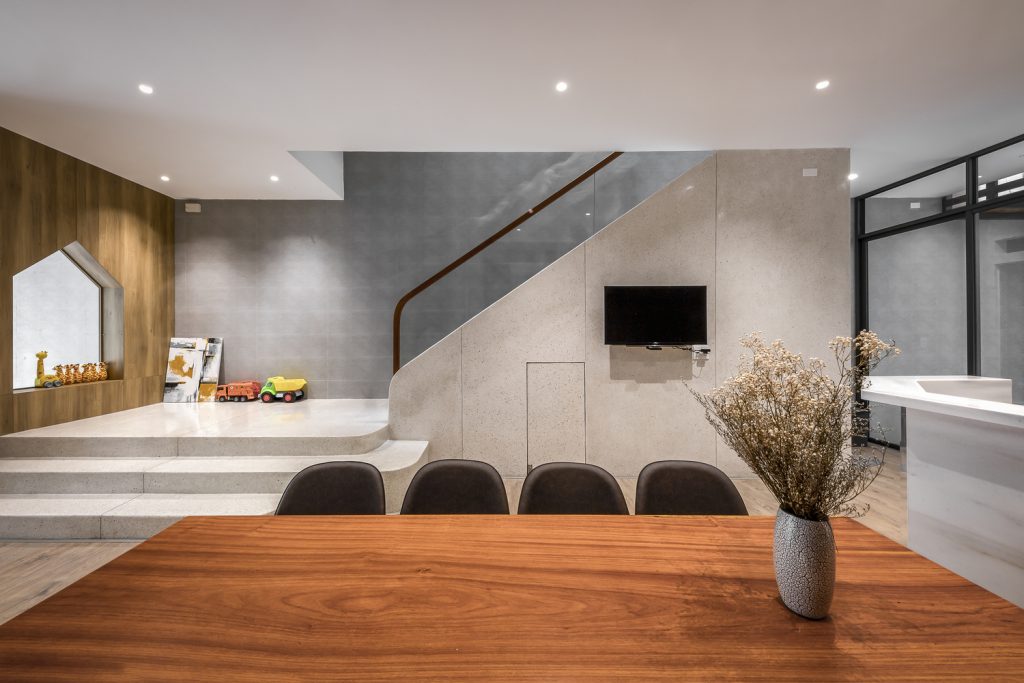 Mô tả bằng văn bản do các kiến trúc sư cung cấp. Khi chúng tôi bắt tay vào dự án thiết kế này, đại dịch virus Corona bùng phát. Việc đóng cửa trường học và các không gian giải trí đã buộc phải thực hiện giãn cách xã hội. Không gian nhà ở bắt đầu đảm nhận nhiệm vụ phục vụ người dân nhiều hơn, điều này khó khăn hơn so với các không gian sống chật hẹp trong các thành phố lớn. Chúng tôi ưu tiên không gian cho trẻ nhỏ, và cũng quan tâm nhiều hơn đến không gian thư giãn.