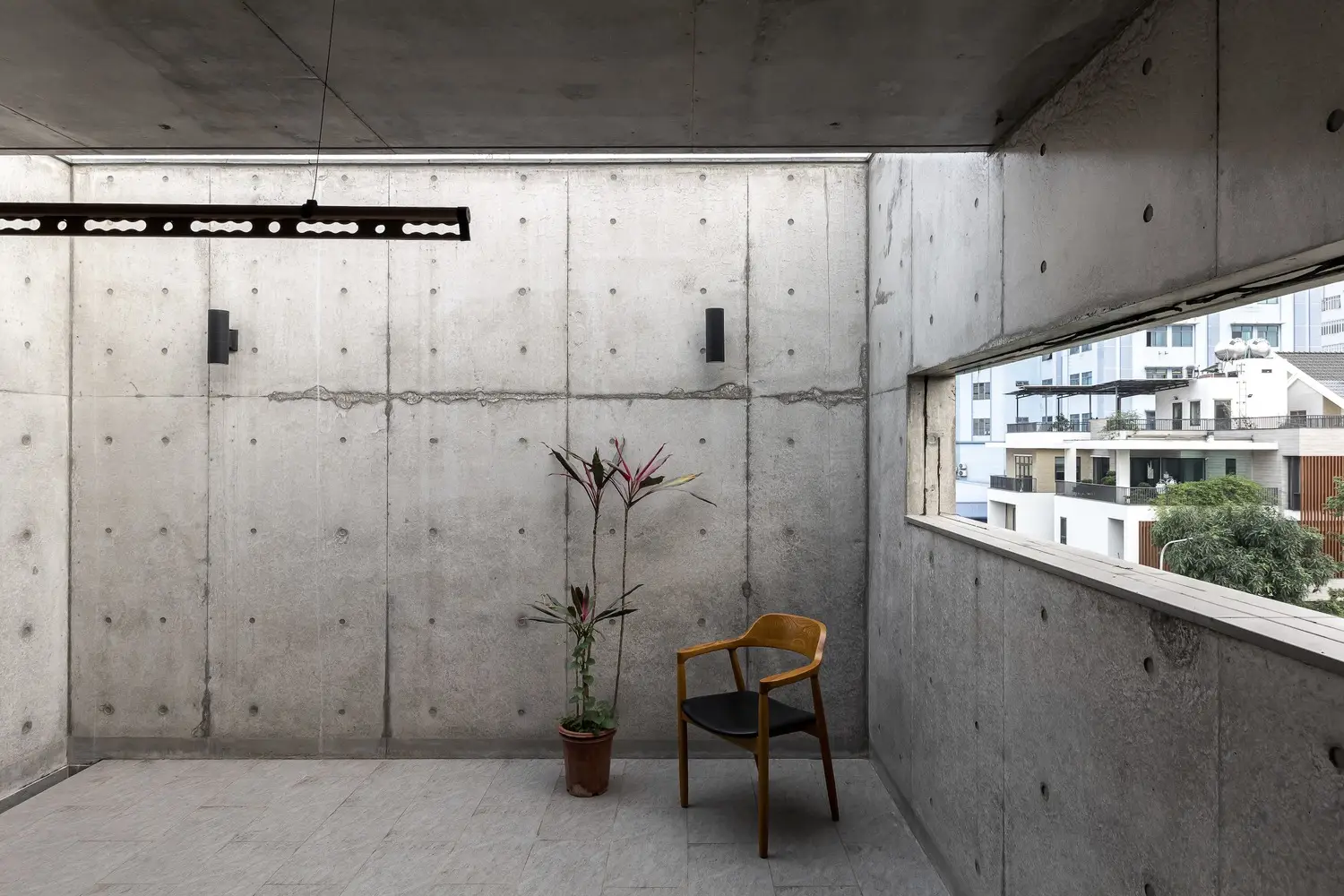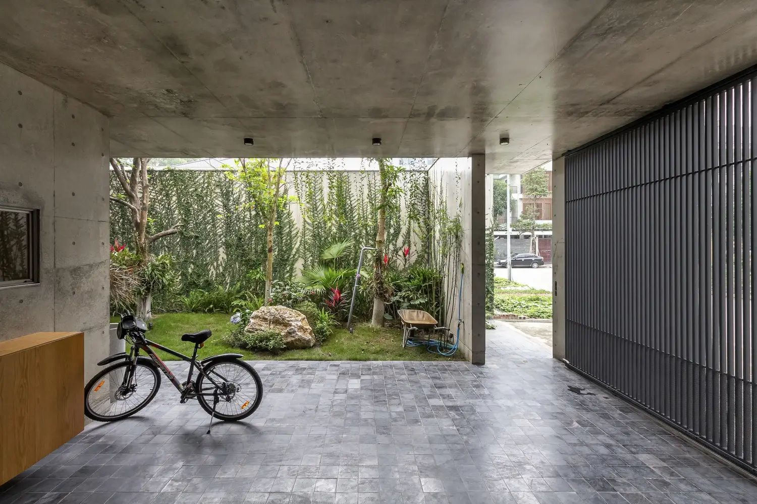 Đây là một dự án khá đặc biệt khi chúng tôi thử nghiệm một kết cấu hoàn toàn bằng bê tông. Công trình nằm trong khu đô thị, diện tích đất 14×17 m, mật độ xây dựng 50%. Cách tiếp cận dự án này cũng tương tự như các dự án khác của văn phòng, chúng tôi mong muốn tìm ra giải pháp đơn giản, bền vững cho các dự án nhà ở tại Việt Nam, đồng thời tìm ra sự cân bằng giữa kiến ​​trúc. và thiên nhiên. Chúng tôi muốn khu vườn không phải là một yếu tố trang trí mà trở thành một phần không thể thiếu của ngôi nhà và phát triển cùng với ngôi nhà. Đồng thời, với việc lựa chọn vật liệu bê tông, mọi quyết định đều được cân nhắc kỹ lưỡng để đảm bảo ngôi nhà có thể sử dụng lâu dài mà không cần phải sửa chữa, thay mới.