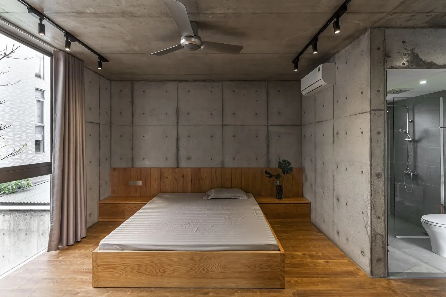 Đối với dự án này, chúng tôi muốn làm một ngôi nhà bằng bê tông trần. Đây là loại vật liệu khá phổ biến trên thế giới nhưng vẫn còn khá mới mẻ ở Việt Nam nói chung và Bắc Giang nói riêng. Đây là loại vật liệu bền vững với thời gian, mang lại cảm xúc cho không gian. Bê tông trần và cây xanh là sự kết hợp hài hòa, bổ sung cho nhau, tạo cảm giác dễ chịu trong điều kiện khí hậu nóng bức của Việt Nam.
