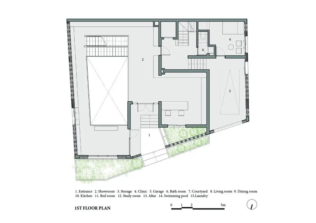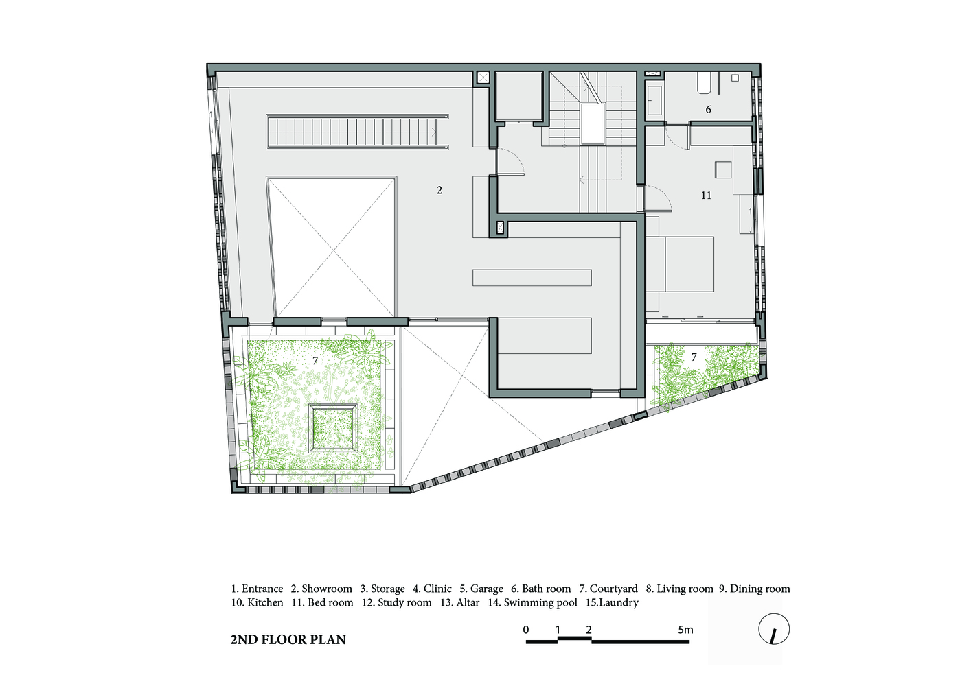 Mô tả văn bản được cung cấp bởi các kiến trúc sư. Dự án tọa lạc tại vị trí đắc địa của thị trấn Bát Tràng – làng gốm đã tồn tại hơn 10 thập kỷ. Mặt tiền của tòa nhà thể hiện văn hóa làm gốm sứ độc đáo của cộng đồng. Trong khi bên ngoài được lấy cảm hứng từ vẻ đẹp truyền thống của thị trấn thì nội thất lại đảm bảo sự tiện lợi và thoải mái cho cuộc sống hiện đại ngày nay. Việc sắp xếp không gian của ngôi nhà cũng dựa trên ngôi nhà lý tưởng của gia chủ, nơi thiên nhiên hòa quyện với các chức năng khác của ngôi nhà.