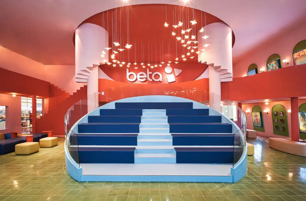 Mô tả văn bản do các kiến trúc sư cung cấp. Màu sắc rực rỡ, hình khối hình học mạnh mẽ và sự hoài niệm về những tòa nhà nổi tiếng của Sài Gòn xưa được thể hiện rõ nét trong thiết kế rạp chiếu phim mới tại TP.HCM. Công ty nội thất Việt Nam Module K đã hoàn thành rạp chiếu phim đầu tiên. Tọa lạc tại tầng trệt của một trung tâm thương mại hiện hữu, rạp chiếu phim rộng 2.000 m2 của Beta Media có sức chứa 1.000 người, hướng đến đối tượng khách hàng trẻ tuổi với không gian Sài Gòn và ngôn ngữ kiến trúc đặc trưng. Từng chi tiết trong thiết kế đều gợi nhớ đến những địa danh nổi tiếng của Sài Gòn nằm rải rác khắp thành phố: Nhà hát Thành phố, Chợ Bến Thành, Bưu điện Trung tâm, Nhà thờ Tân Định, Quảng trường Công xã Paris và những con hẻm nhỏ.