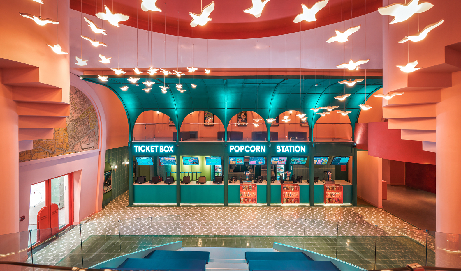 Mô tả văn bản do các kiến trúc sư cung cấp. Màu sắc rực rỡ, hình khối hình học mạnh mẽ và sự hoài niệm về những tòa nhà nổi tiếng của Sài Gòn xưa được thể hiện rõ nét trong thiết kế rạp chiếu phim mới tại TP.HCM. Công ty nội thất Việt Nam Module K đã hoàn thành rạp chiếu phim đầu tiên. Tọa lạc tại tầng trệt của một trung tâm thương mại hiện hữu, rạp chiếu phim rộng 2.000 m2 của Beta Media có sức chứa 1.000 người, hướng đến đối tượng khách hàng trẻ tuổi với không gian Sài Gòn và ngôn ngữ kiến trúc đặc trưng. Từng chi tiết trong thiết kế đều gợi nhớ đến những địa danh nổi tiếng của Sài Gòn nằm rải rác khắp thành phố: Nhà hát Thành phố, Chợ Bến Thành, Bưu điện Trung tâm, Nhà thờ Tân Định, Quảng trường Công xã Paris và những con hẻm nhỏ.