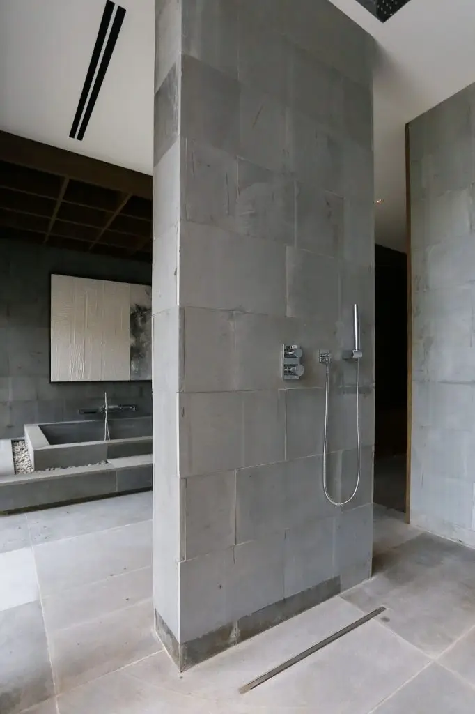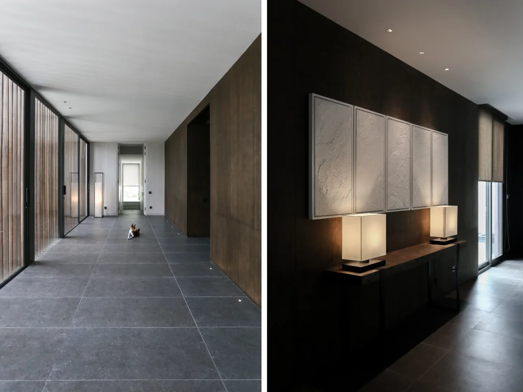 Và trên hệ khung không gian hòa trộn thật nhuần nhuyễn các thành tố hình khối, tỷ lệ và nhịp điệu chuẩn xác ấy, bảng màu được khéo dùng từ xám trắng đến nâu nhạt đã thực sự tạo nên một đẳng cấp riêng biệt cho ngôi nhà này.