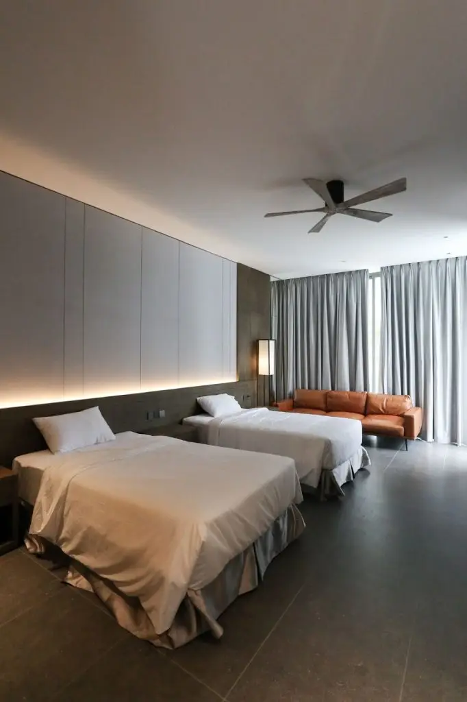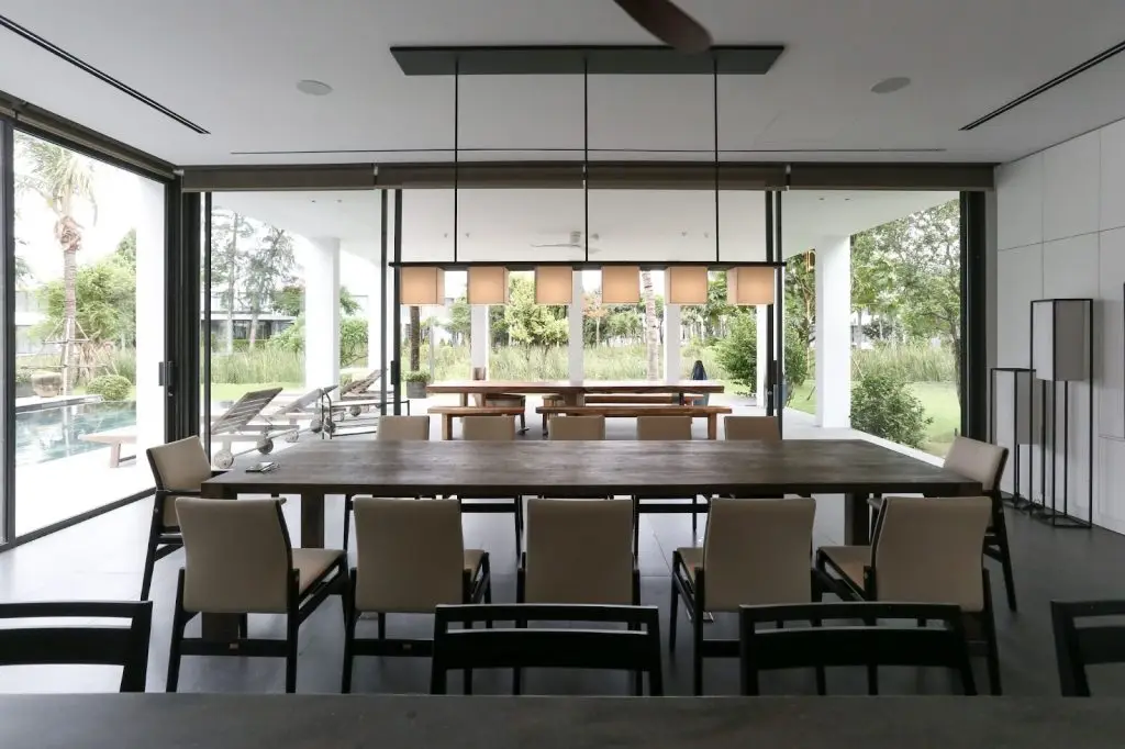 Giải pháp đồng bộ và chăm chút kỹ lưỡng giúp tăng giá trị nghỉ dưỡng, ánh sáng tự nhiên được tận dụng tối đa đồng thời điều tiết phù hợp với những thanh lam gỗ vừa che nắng vừa tăng giá trị thẩm mỹ chung cho công trình.