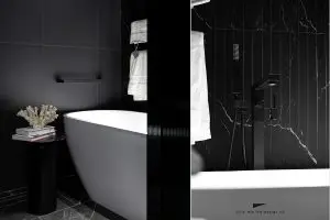 Không gian căn hộ với thiết kế hiện đại, sử dụng hai màu đen và trắng chủ đạo