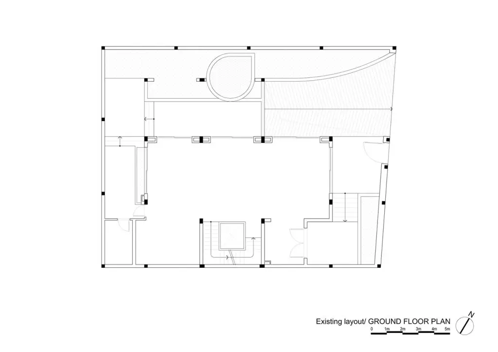 Hạn chế chính là phải giữ nguyên cấu trúc hiện có, đồng thời tổ chức lại luồng giao thông và nâng cao chất lượng cuộc sống. Giải pháp thiết kế được đề xuất là di dời giếng thang máy, tạo ra một giếng trời thông thoáng từ mái nhà xuống tầng trệt để đưa ánh sáng tự nhiên và thông gió sâu vào bên trong ngôi nhà, giúp không gian thoáng đãng và tiết kiệm năng lượng.