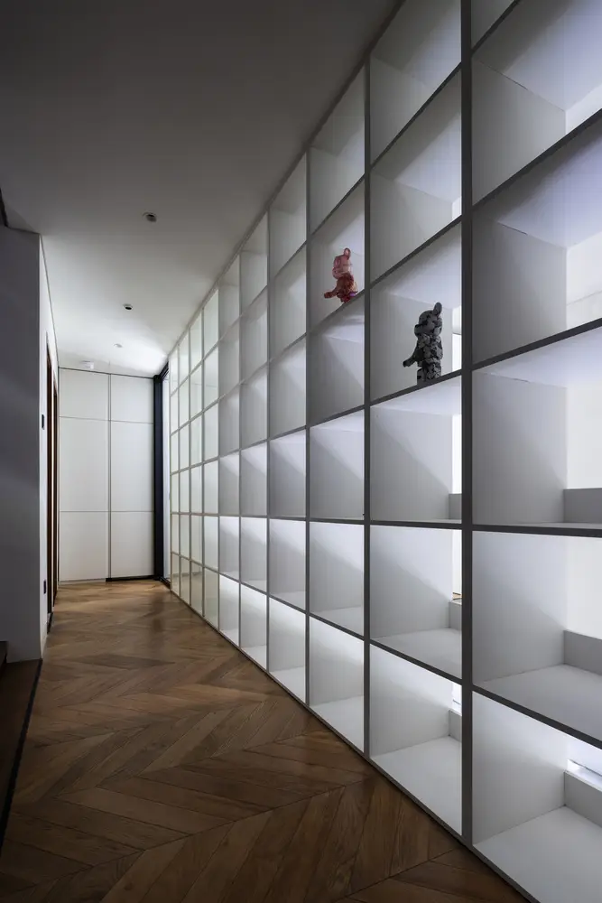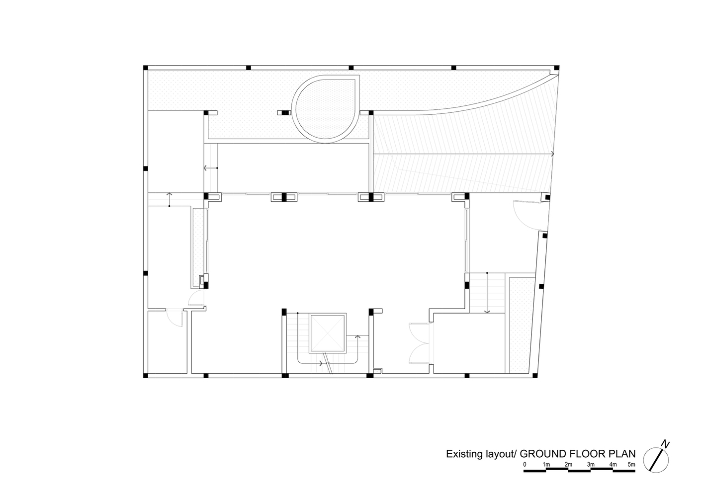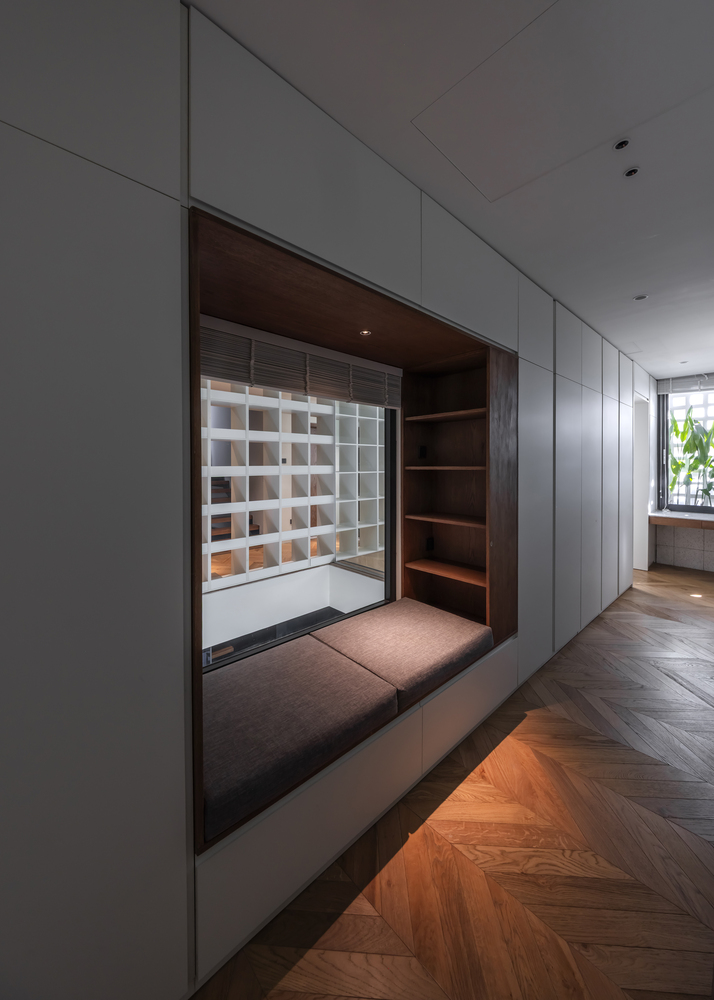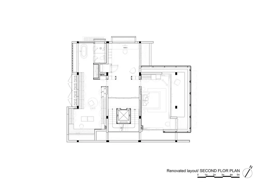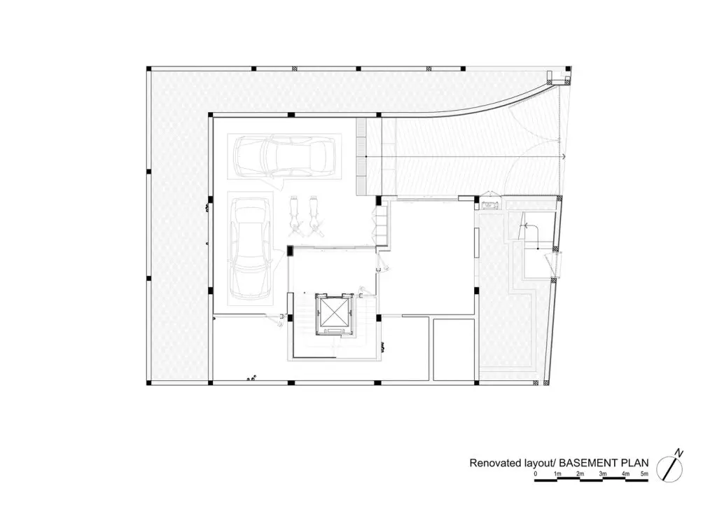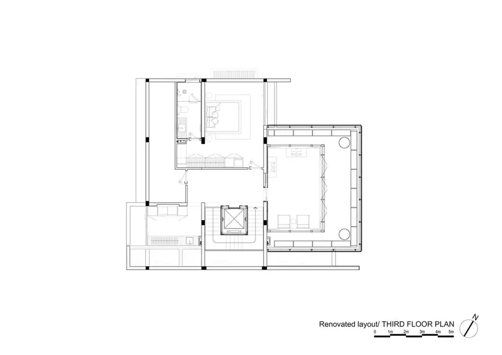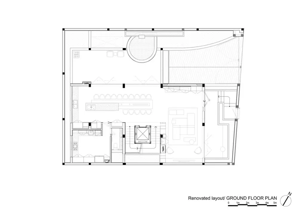 Hạn chế chính là phải giữ nguyên cấu trúc hiện có, đồng thời tổ chức lại luồng giao thông và nâng cao chất lượng cuộc sống. Giải pháp thiết kế được đề xuất là di dời giếng thang máy, tạo ra một giếng trời thông thoáng từ mái nhà xuống tầng trệt để đưa ánh sáng tự nhiên và thông gió sâu vào bên trong ngôi nhà, giúp không gian thoáng đãng và tiết kiệm năng lượng.