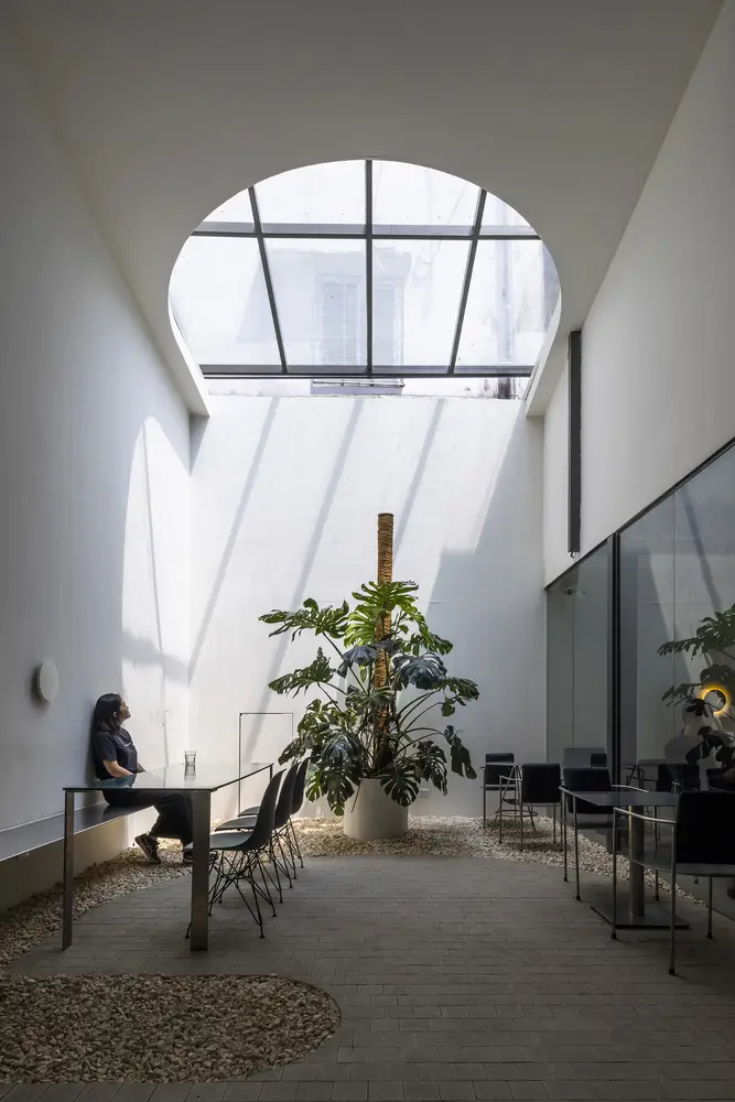 Mô tả do các kiến trúc sư cung cấp. Bosgaurus Coffee Roasters là một chuyên gia địa phương chuyên phục vụ cà phê đặc sản “từ nông trại đến bàn ăn”. Với khẩu hiệu “giữ cho ước mơ luôn tỉnh thức”, họ không ngừng thử nghiệm để nâng cao chất lượng và tay nghề cà phê Việt Nam trên trường quốc tế. Bằng việc mở cửa hàng flagship tại Thành phố Hồ Chí Minh , họ tiếp tục tìm kiếm ngôn ngữ thiết kế tối giản và thanh lịch. Bối cảnh văn hóa địa phương là động lực lớn nhất cho thiết kế, đặc biệt là Nhà hát Opera Sài Gòn gần đó, không chỉ truyền cảm hứng cho kiến trúc mà còn cả ý tưởng về biểu diễn trực tiếp. Mặt tiền theo phong cách Art Deco hiện có của địa điểm đã được bảo tồn và sơn màu trung tính để phù hợp với tông màu của Nhà hát Opera Sài Gòn.